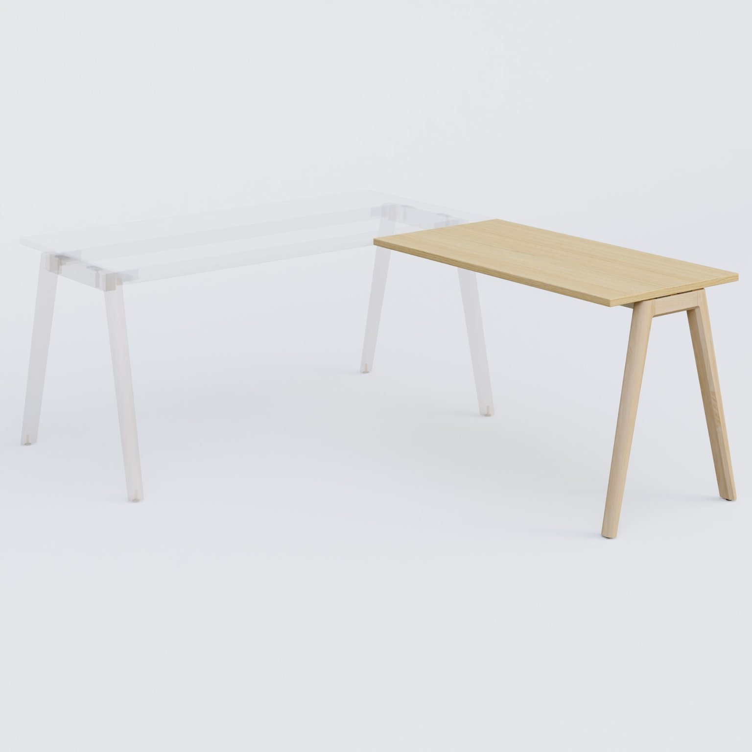 Extensions retour sur pied pour bureau K9 piètement incliné en bois et plateau 120*60 cm. Plateau Chêne clair et pietement bois massif de hêtre.