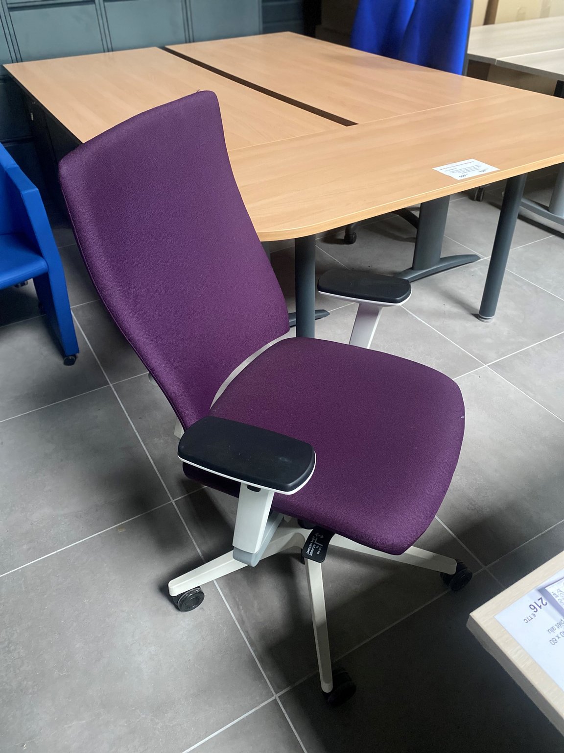 Fauteuil de bureau E.T acocoudoirs 4D structure blanche, assise et dossier tissu prune