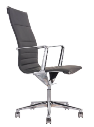 - Fauteuil haut dossier PURE, mécanique multi block revêtement CUIR pleine fleur coloris noir, embase 5 branches aluminium poli sur roulettes