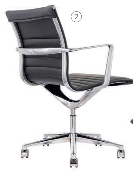- Fauteuil moyen dossier PURE, piétement 5 branches aluminium poli sur roulettes