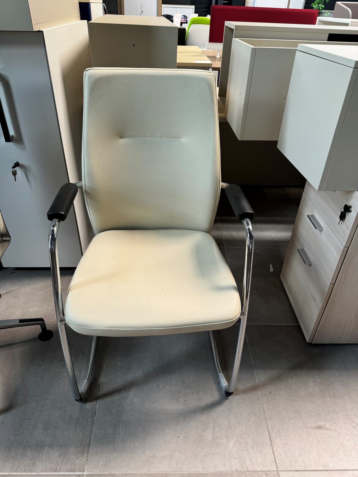 - Fauteuil visiteur en cuir blanc structure chromée piétement luge