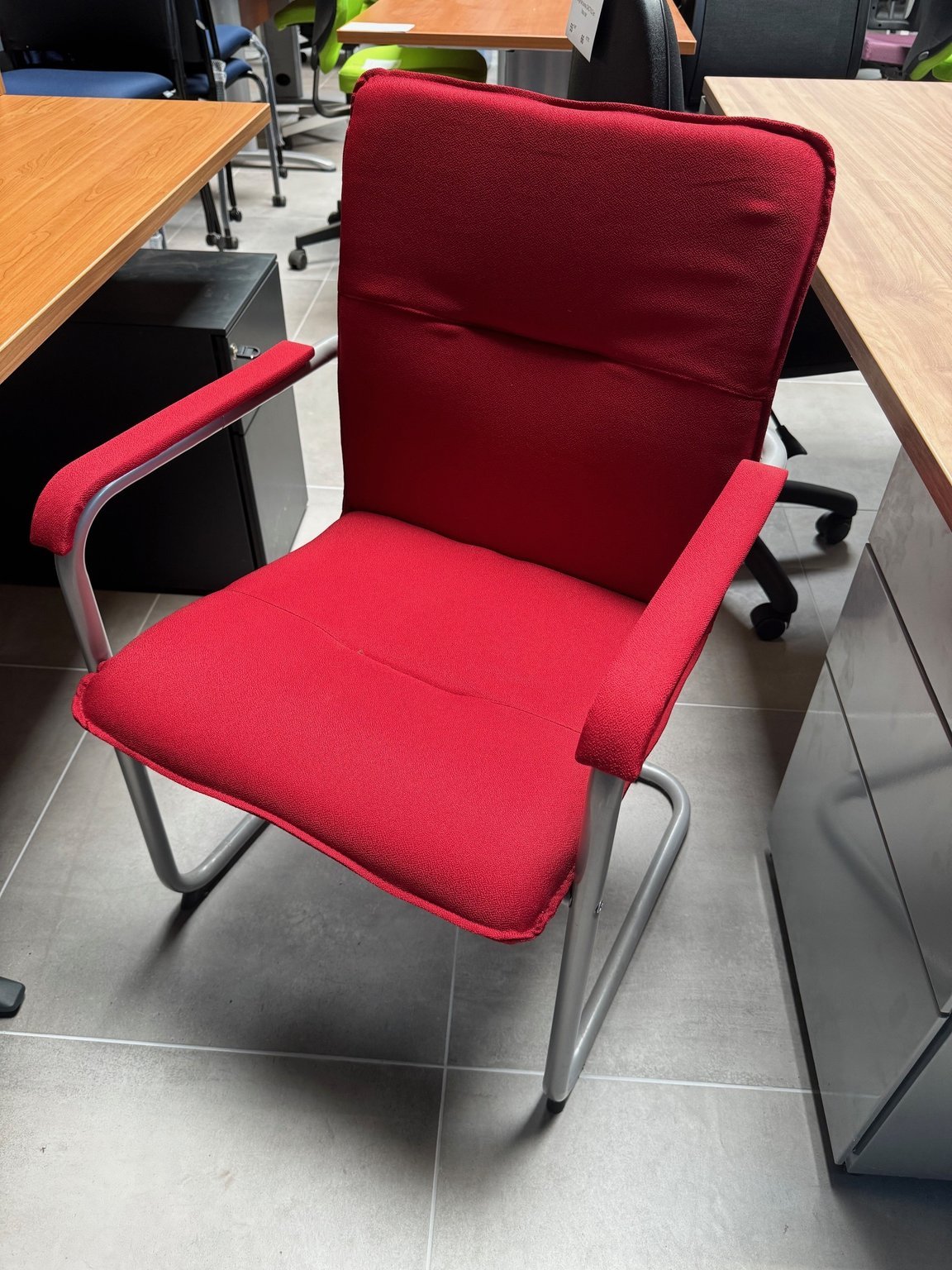 - Fauteuil visiteur tissu rouge strcture tube métallique couleur aluminium