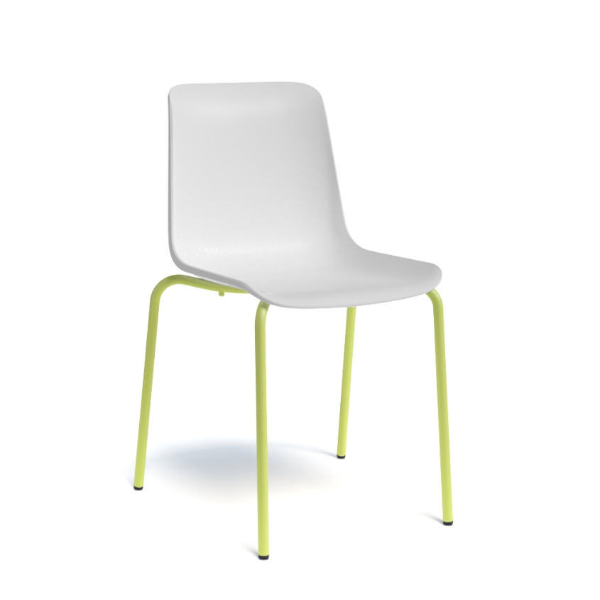 Galaxy. chaise 4 pieds diam 19mm - HT 46 cm - Pieds époxy. finition Polypropylène Blanc/ piétement Epoxy Light olive mat