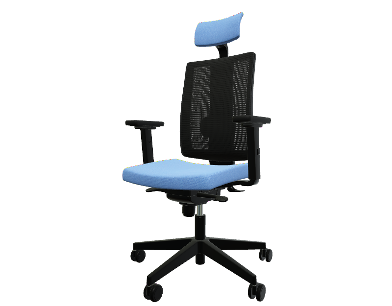 Siège de travail FIRST, mécanique synchrone, tissu bleu, structure nylon noir - sur délai