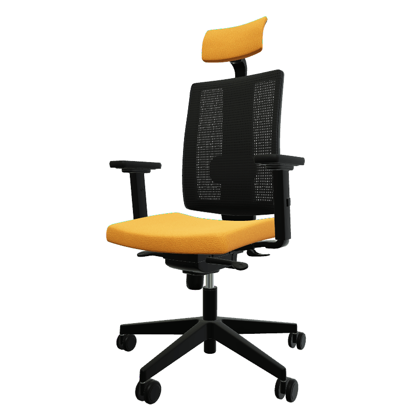 Siège de travail FIRST, mécanique synchrone, tissu jaune, structure nylon noir - sur délai