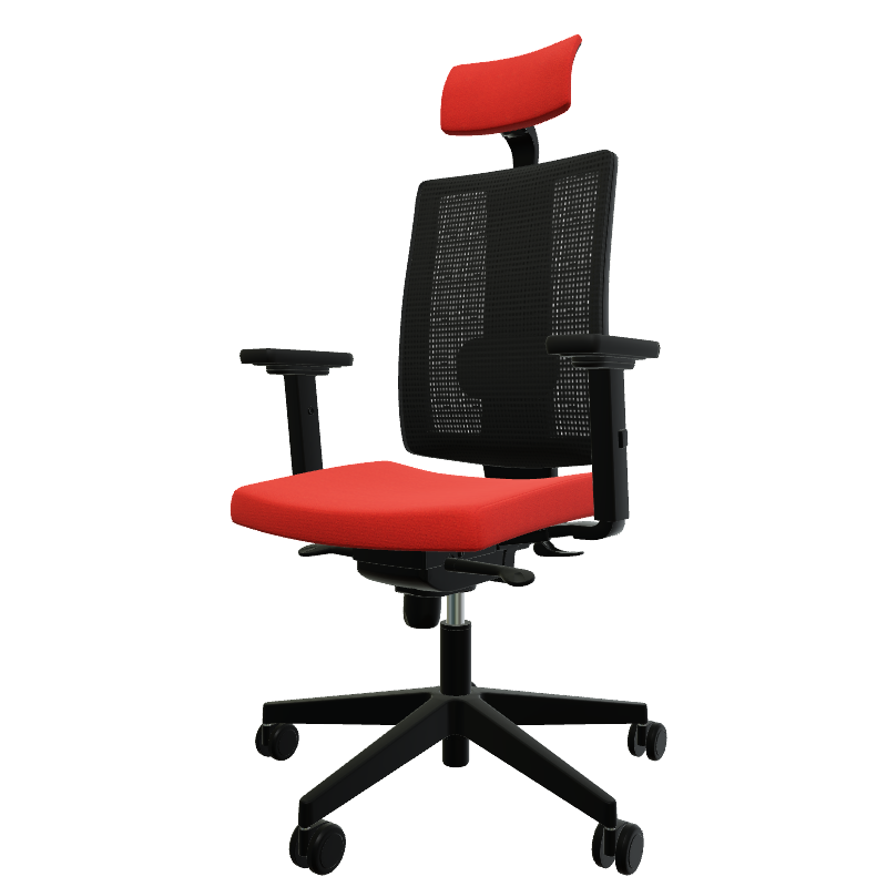 Siège de travail FIRST, mécanique synchrone, tissu rouge, structure nylon noir - sur délai