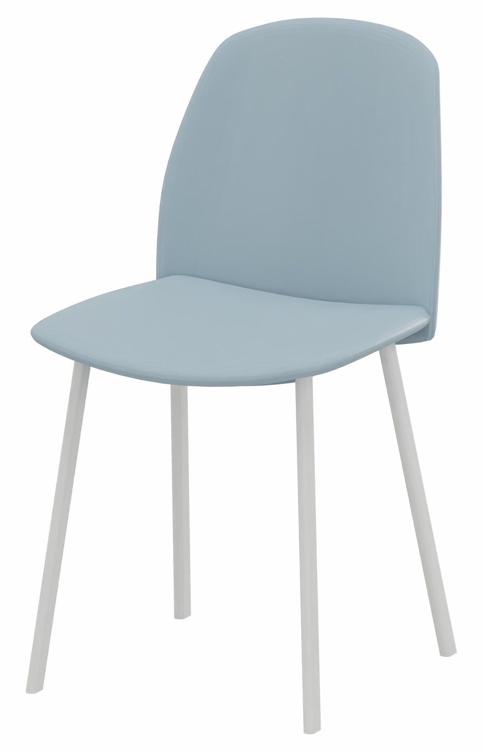 Indra. chaise 4 pieds. HT 46cm. structure époxy . finition Mosaïc Light blue mat/ piétement Epoxy Blanc mat