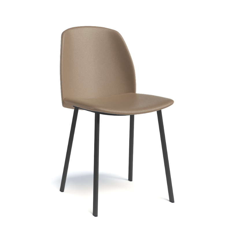 Indra. chaise 4 pieds. HT 46cm. finition Mosaïc Gris acier métallisé/ piétement Epoxy Noir mat