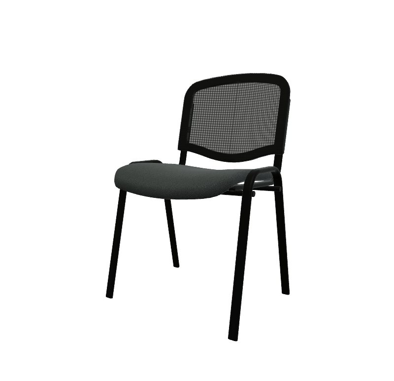 Joker Mesh - Chaise piétement 4 pieds laqué noir (A).Assise tissu Lucia Gris foncé YBP (YBP) et dossier résille noir