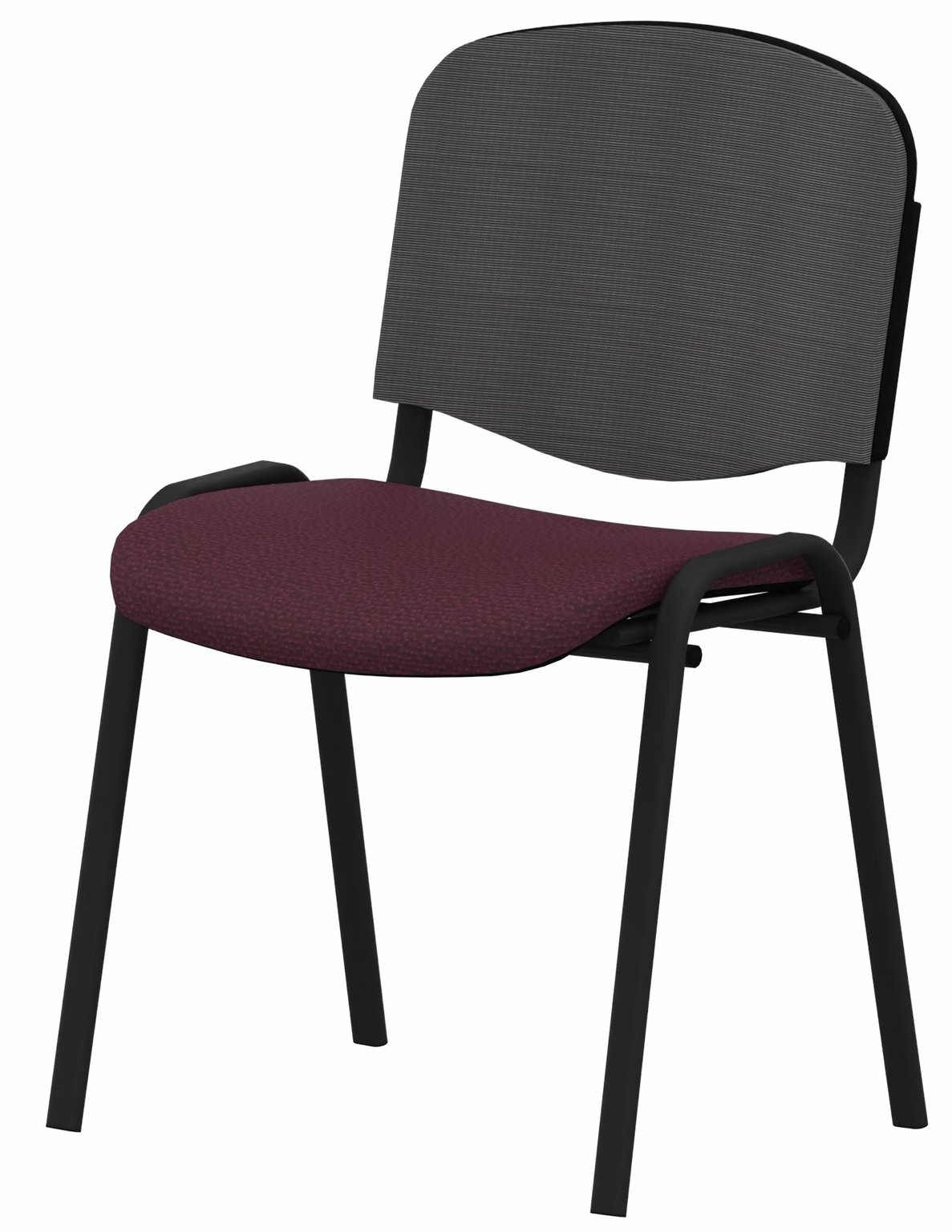 Joker Mesh - Chaise piétement 4 pieds laqué noir (A).Assise tissu et dossier résille Bondai Prune (BNQ)