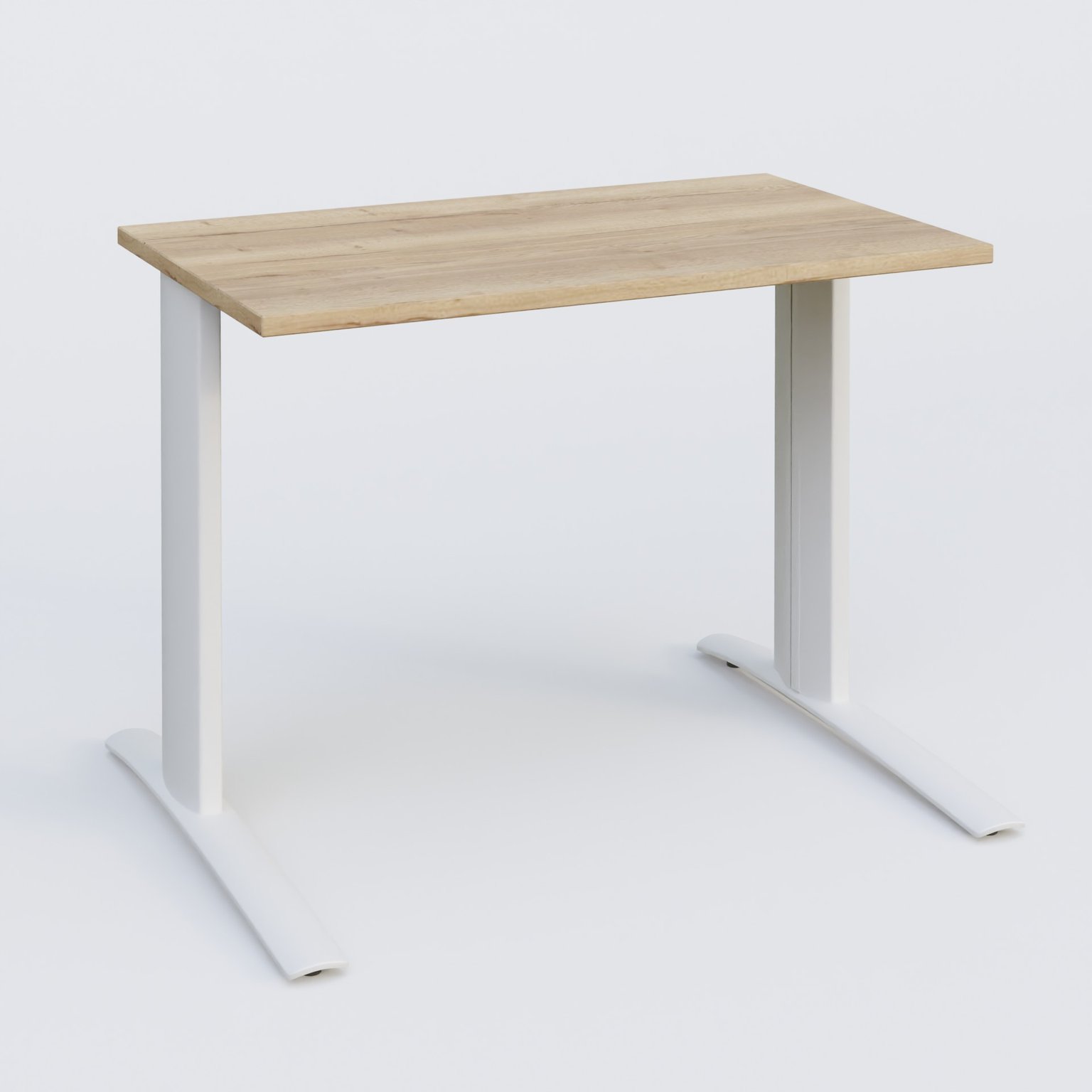 K1 Plateau droit 100x60 pieds fixe. Plateau Chêne naturel et pietement Blanc