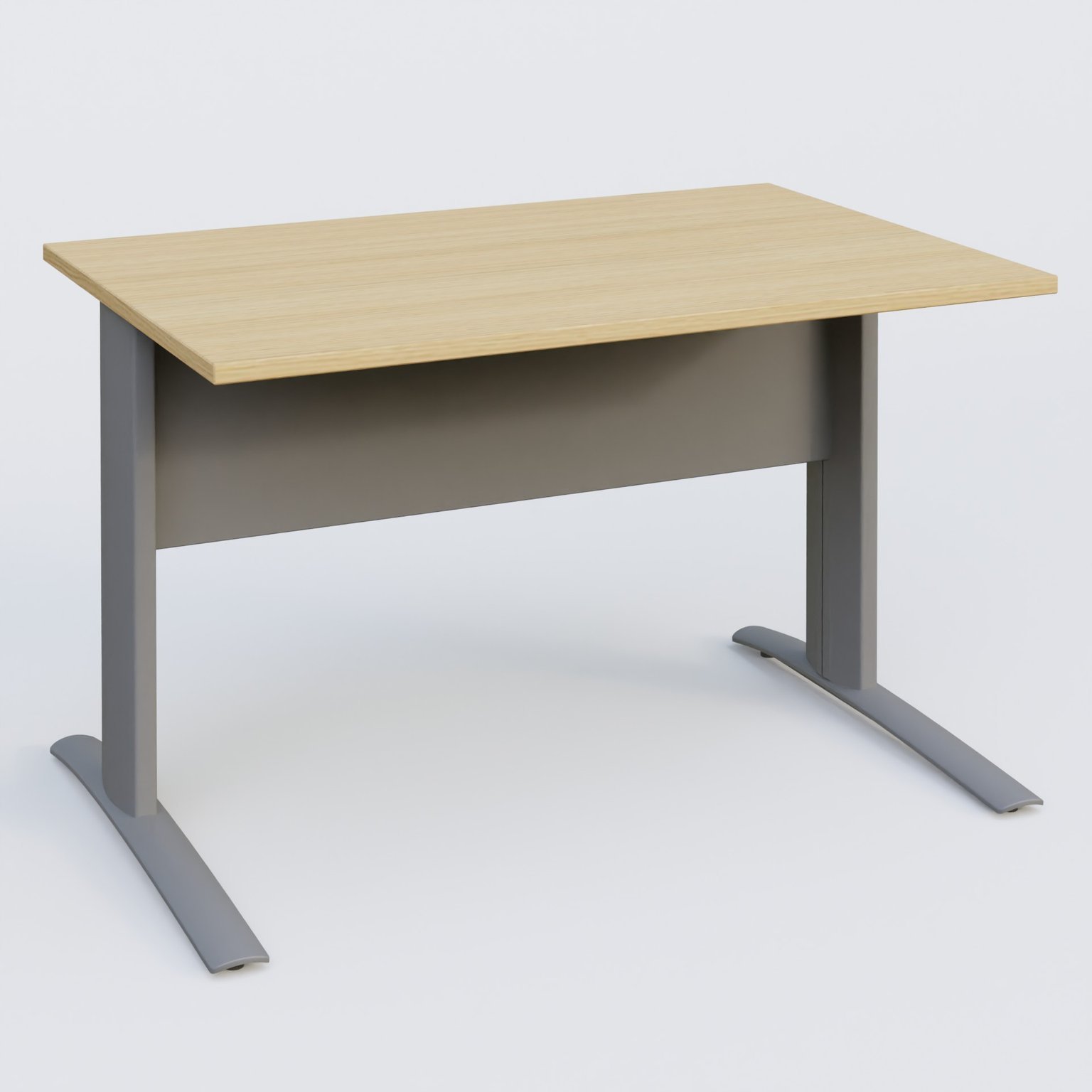 K1 Plateau droit 120x80 avec voile de fond métal. Plateau Chêne clair et pietement Aluminium