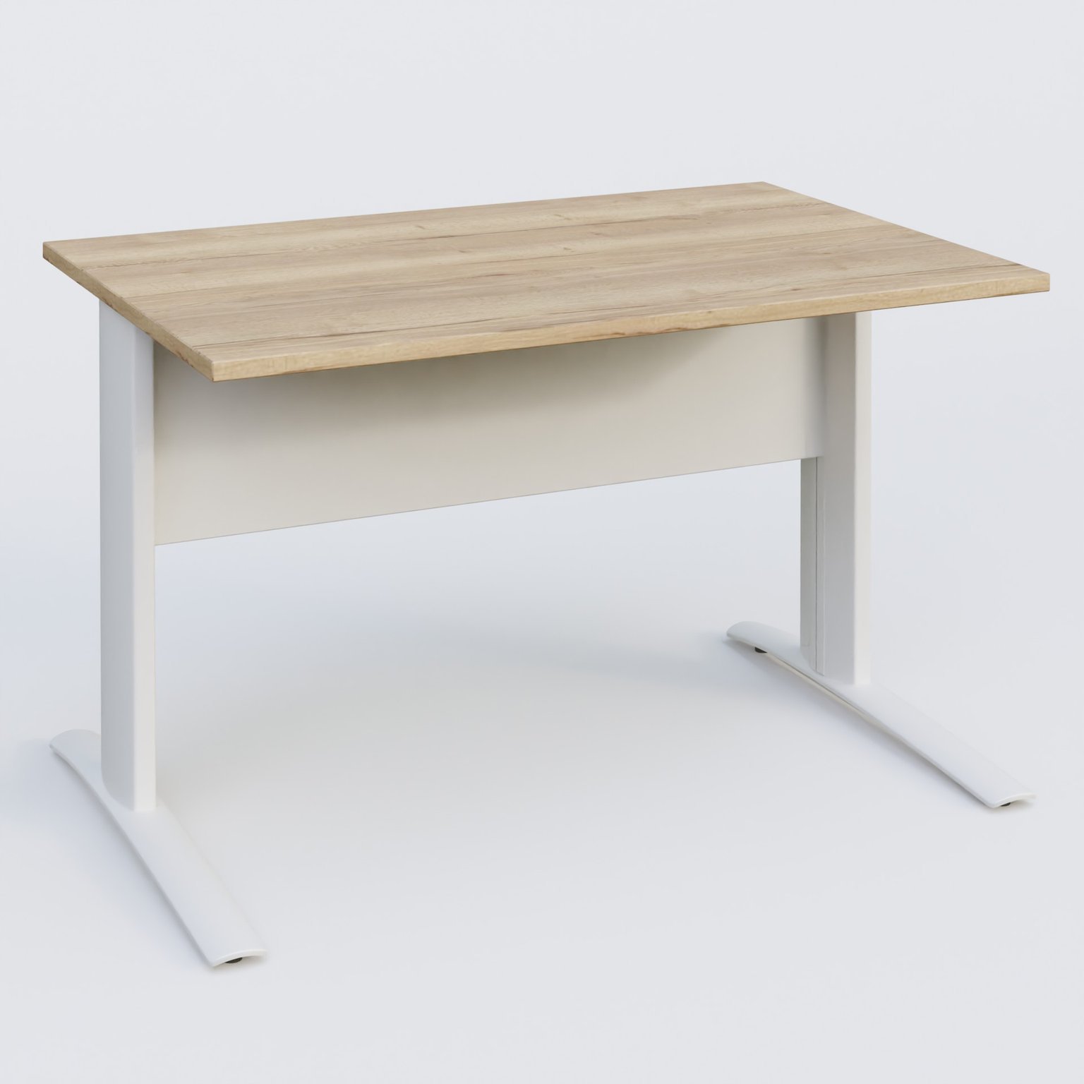 K1 Plateau droit 120x80 avec voile de fond métal. Plateau Chêne naturel et pietement Blanc