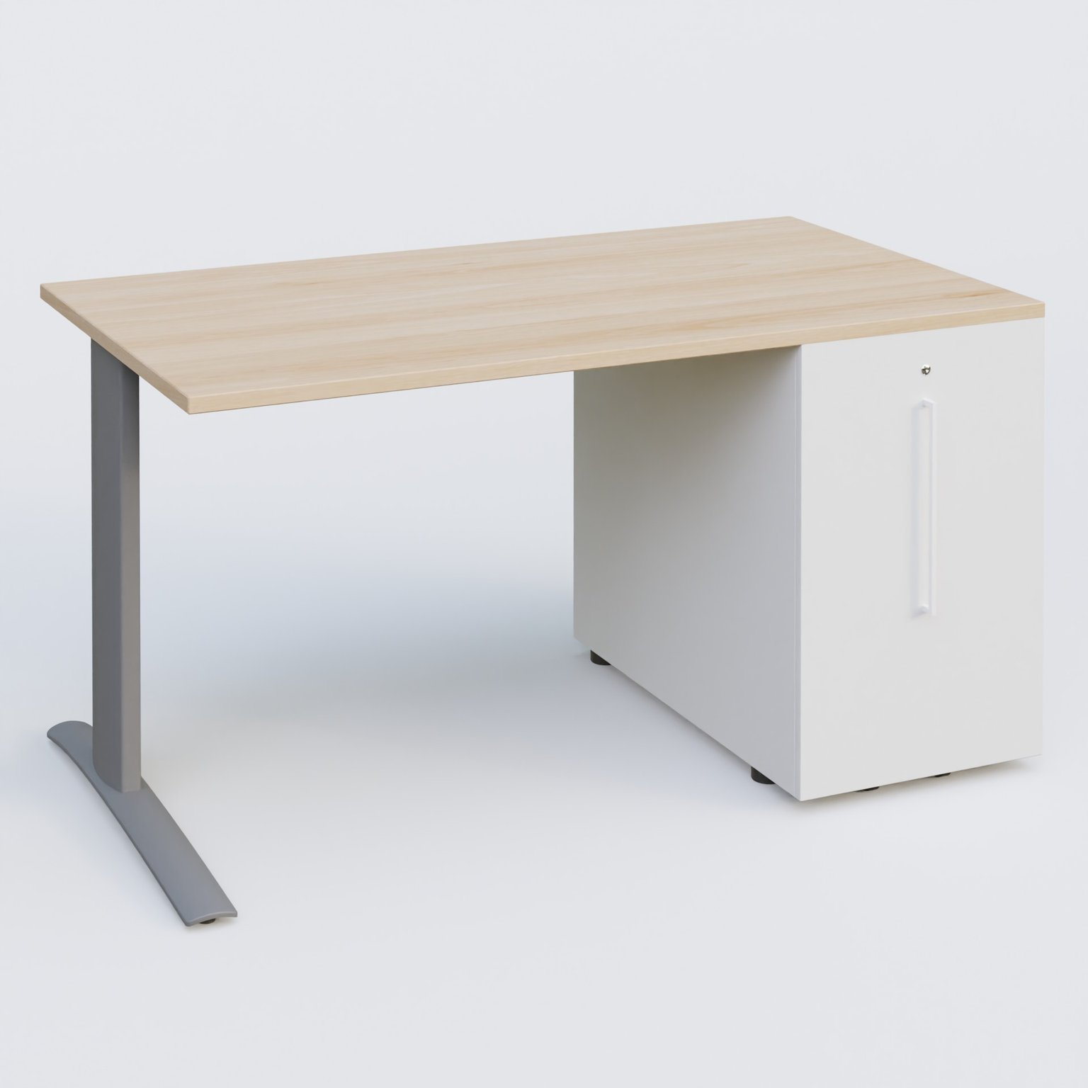 K1 Plateau droit 140x80 avec tour de rangement sous plateau à droite. Plateau Hêtre et pietement Aluminium