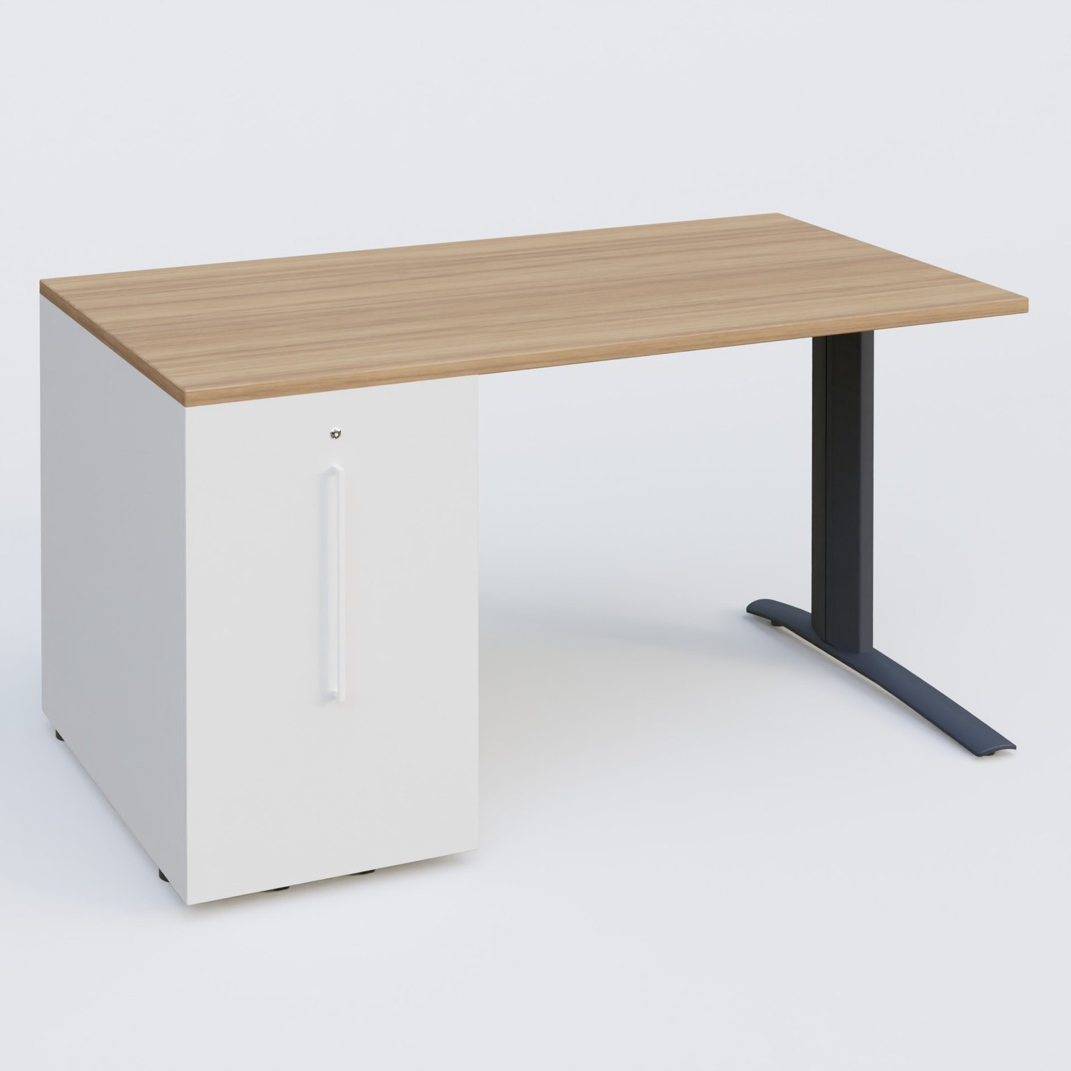 K1 Plateau droit 140x80 avec tour de rangement sous plateau à gauche. Plateau Noyer et pietement Anthracite