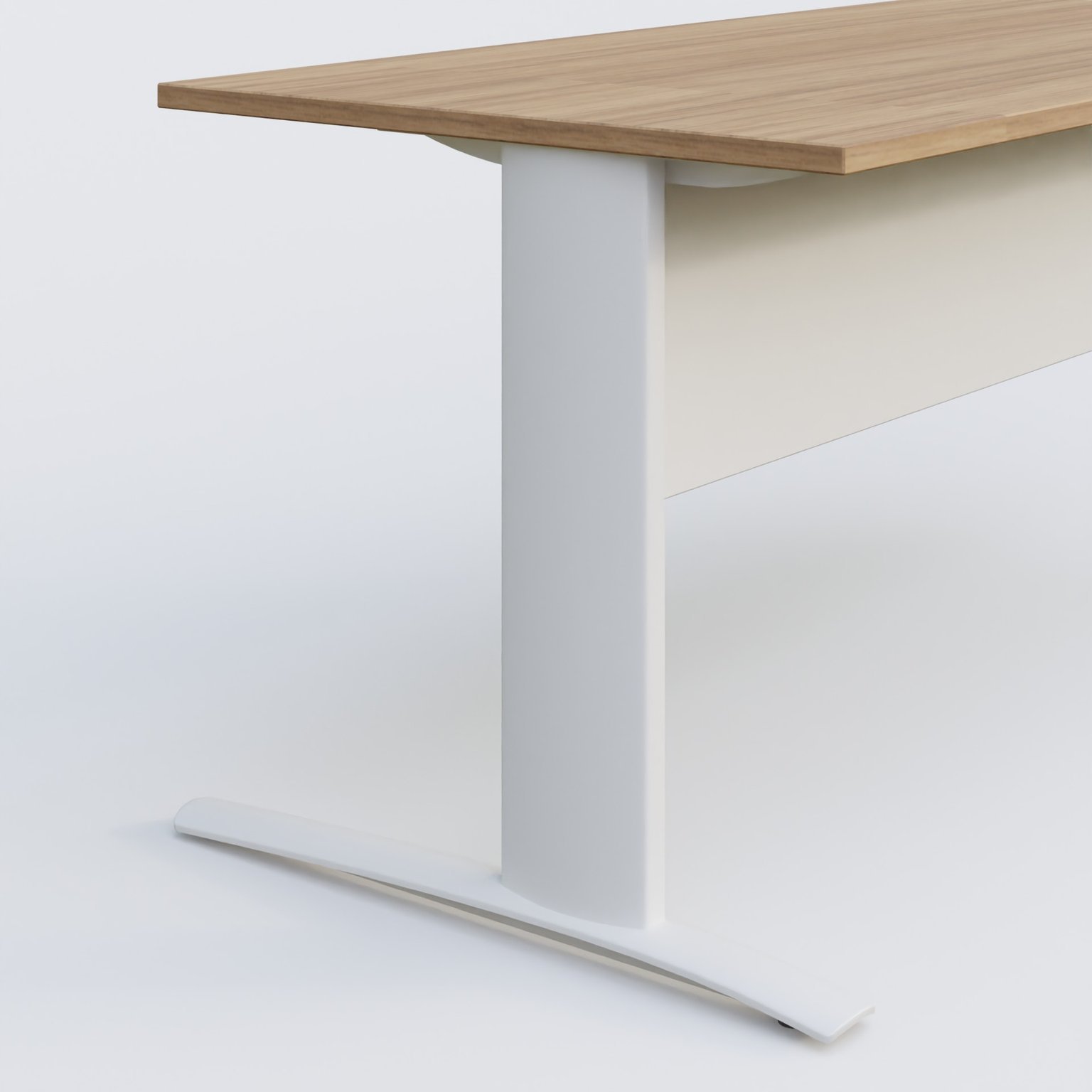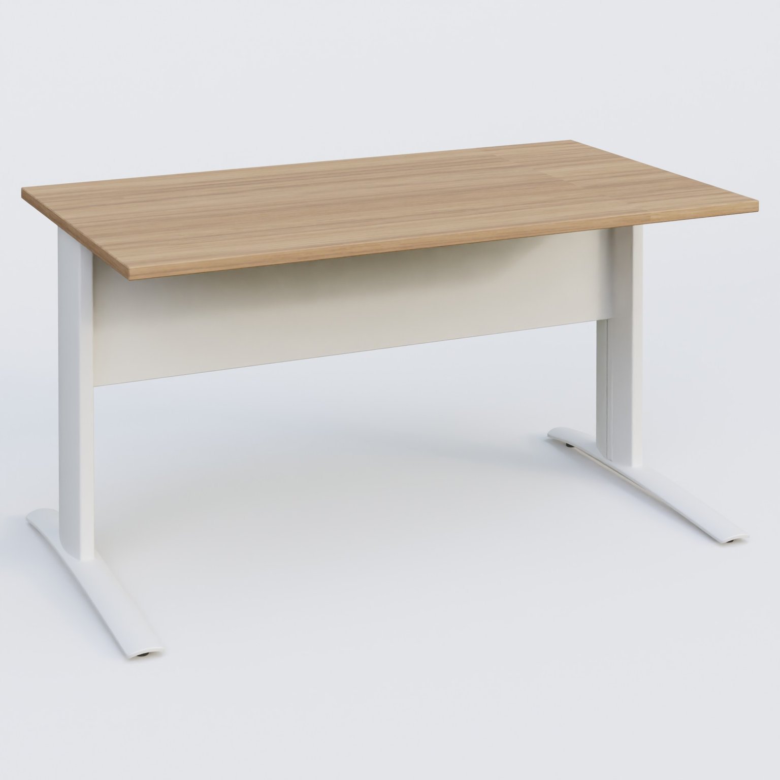 K1 Plateau droit 140x80 avec voile de fond métal. Plateau Noyer et pietement Blanc