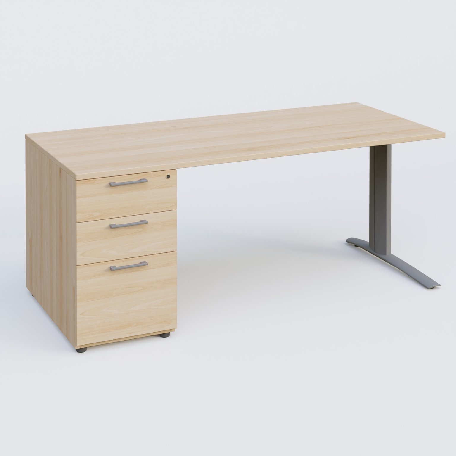 K1 Plateau droit 160x80 avec caisson porteur sous plateau mélamine à gauche. Plateau Hêtre et pietement Aluminium