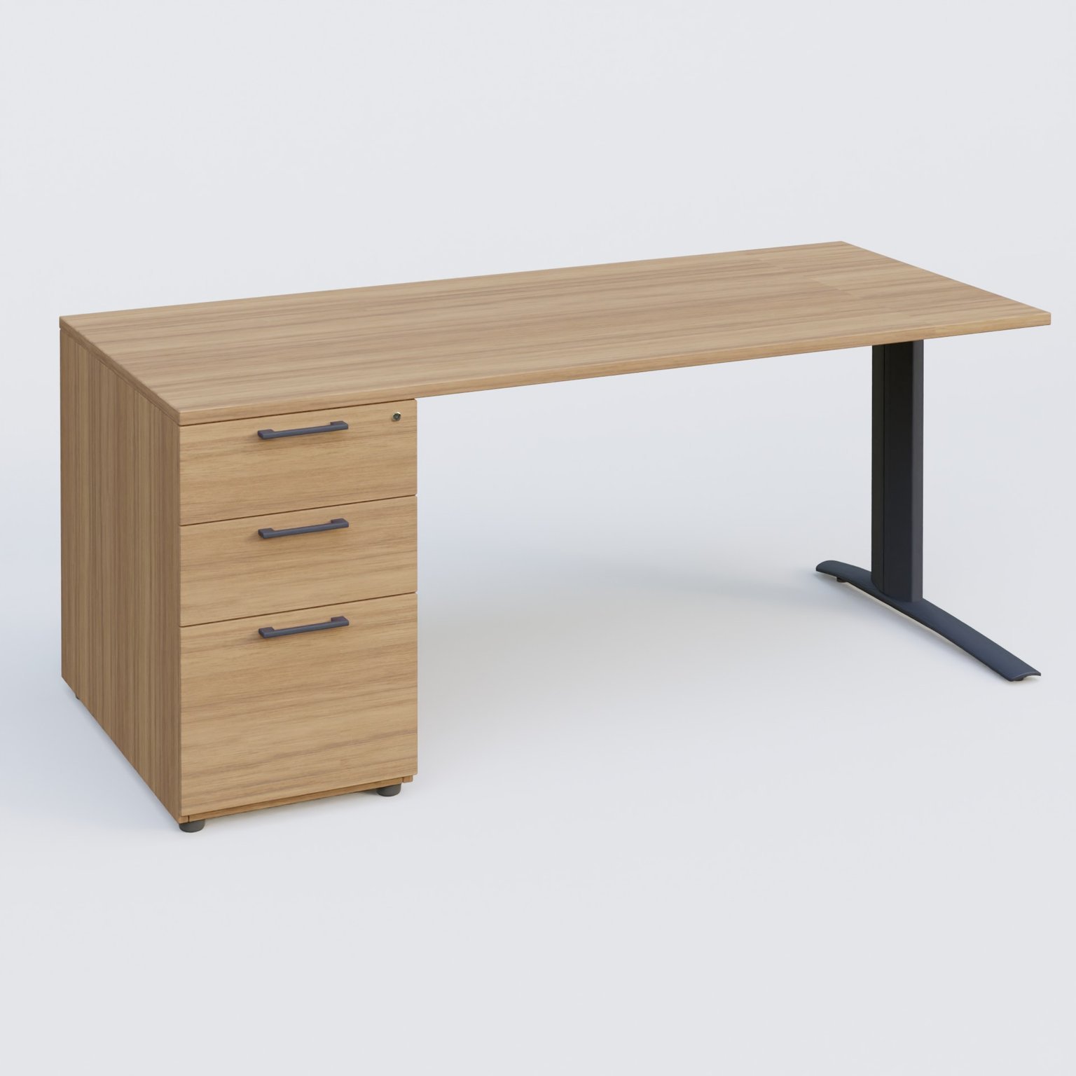 K1 Plateau droit 160x80 avec caisson porteur sous plateau mélamine à gauche. Plateau Noyer et pietement Anthracite