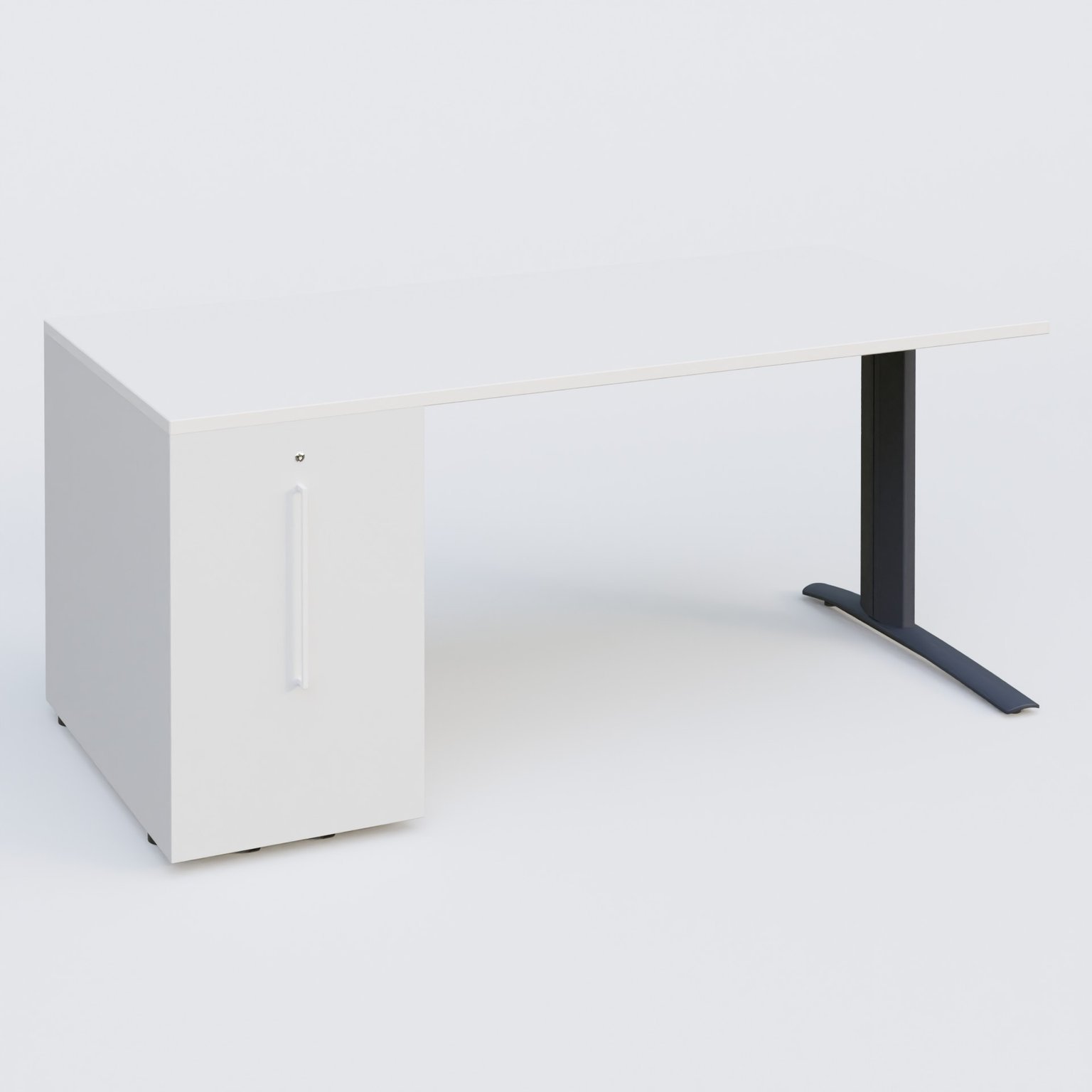 K1 Plateau droit 160x80 avec tour de rangement sous plateau à gauche. Plateau Blanc et pietement Anthracite