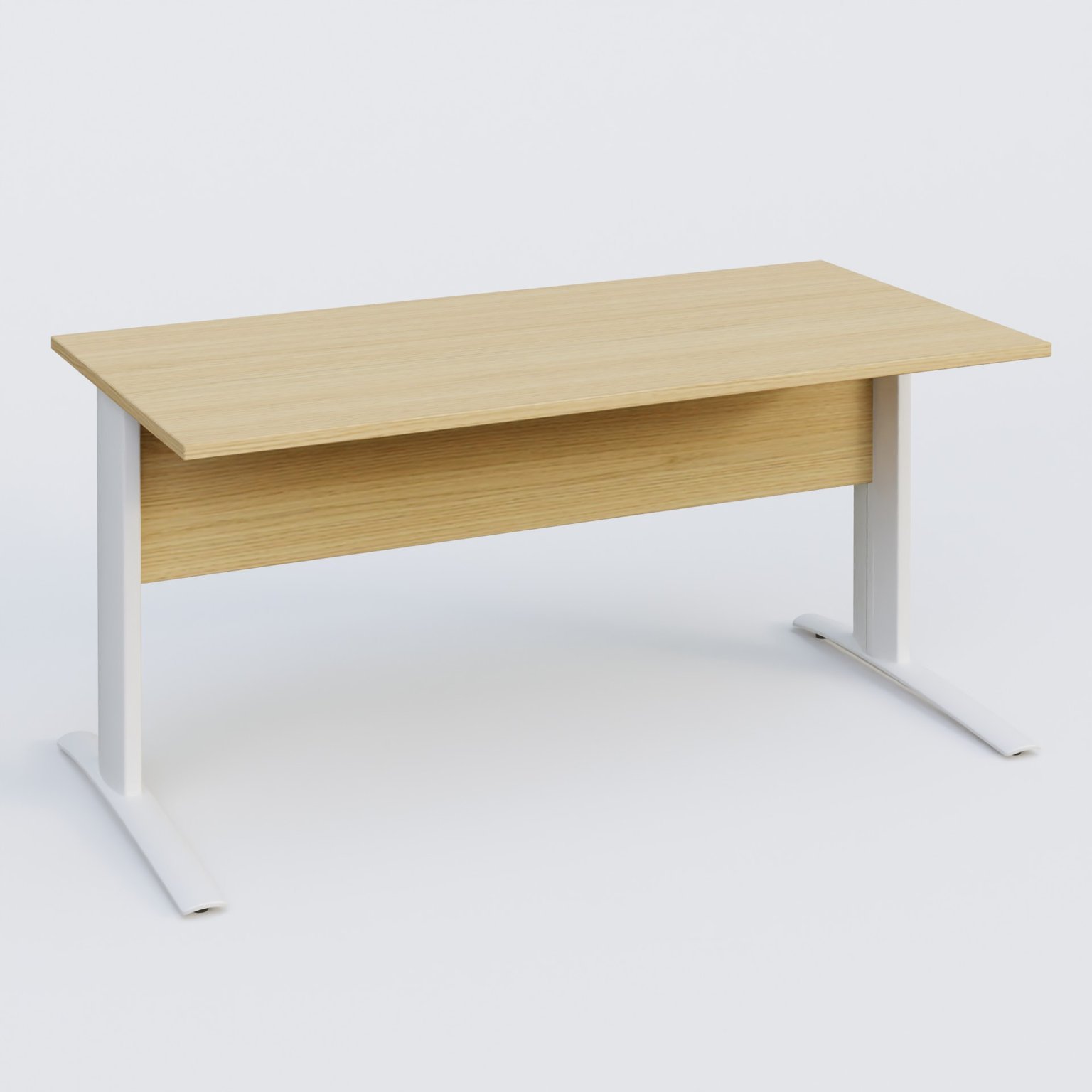 K1 Plateau droit 160x80 avec voile de fond bois. Plateau Chêne clair et pietement Blanc
