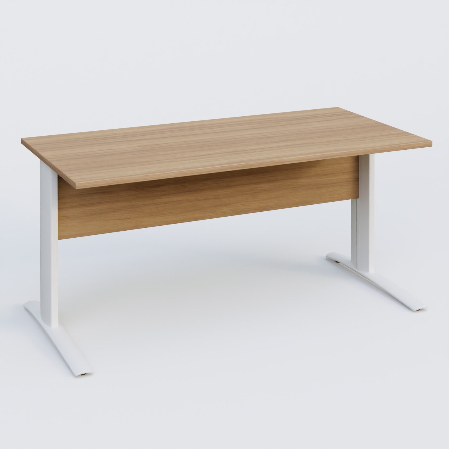 K1 Plateau droit 160x80 avec voile de fond bois. Plateau Noyer et pietement Blanc