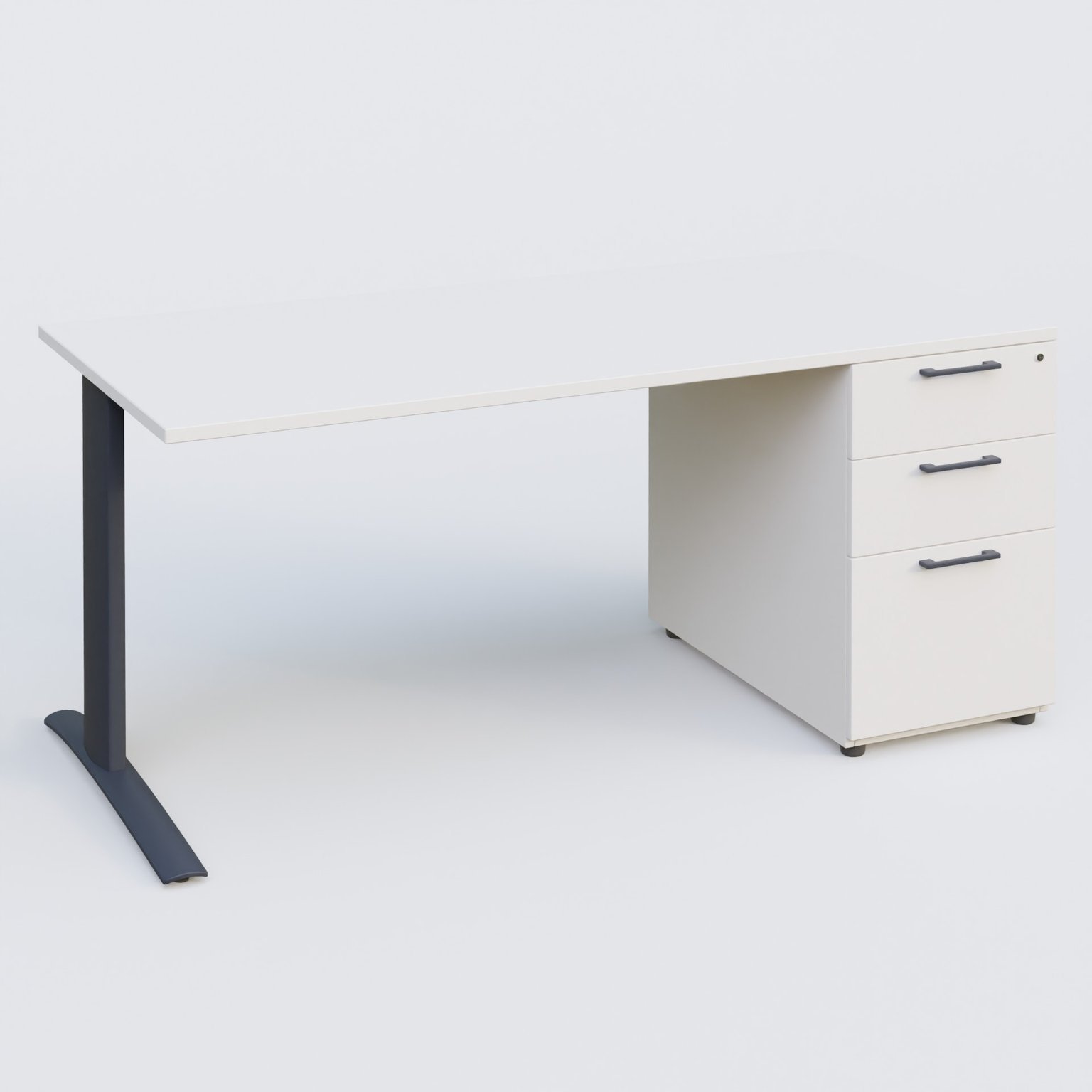 K1 Plateau droit 180x80 avec caisson porteur sous plateau mélamine à droite. Plateau Blanc et pietement Anthracite