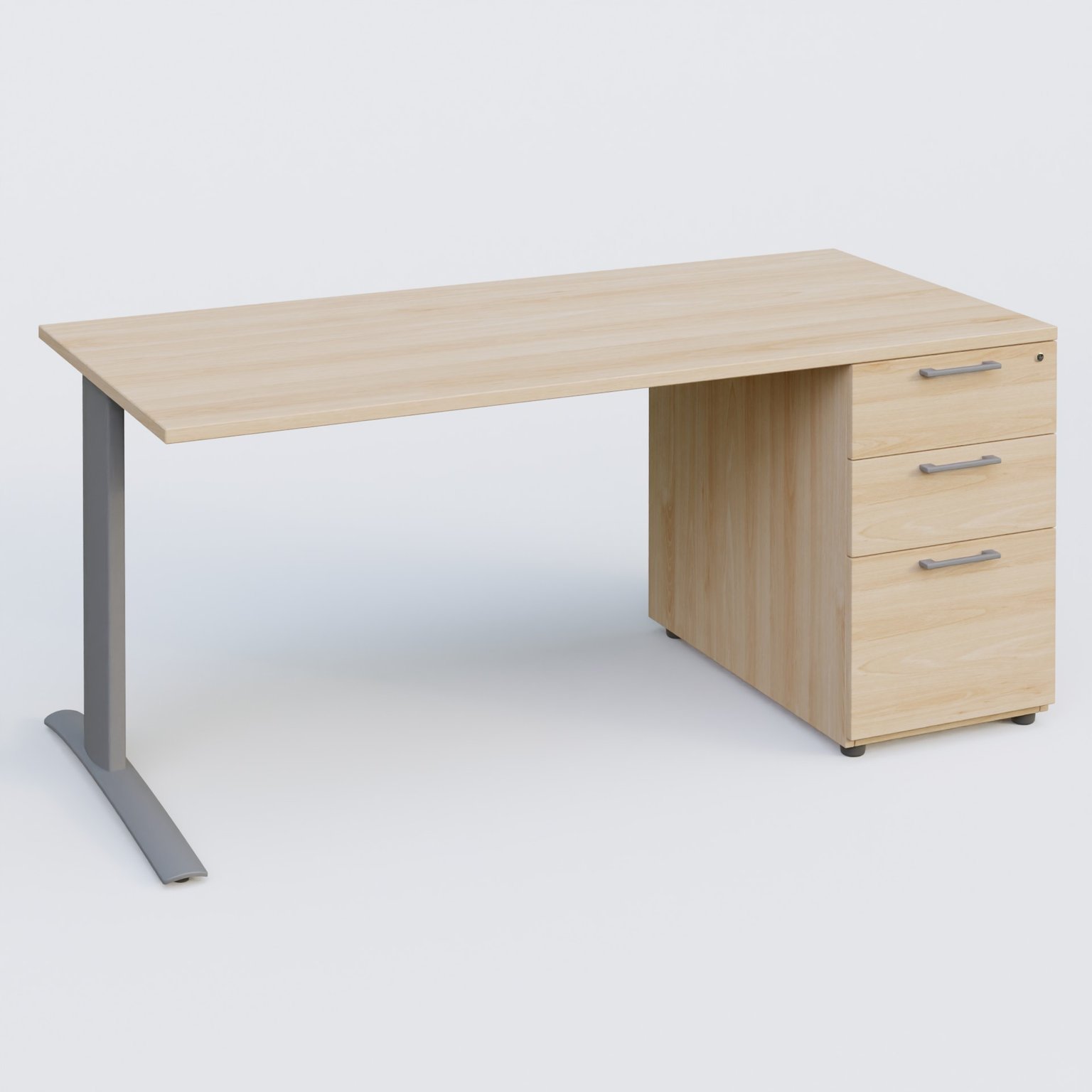 K1 Plateau droit 180x80 avec caisson porteur sous plateau mélamine à droite. Plateau Hêtre et pietement Aluminium