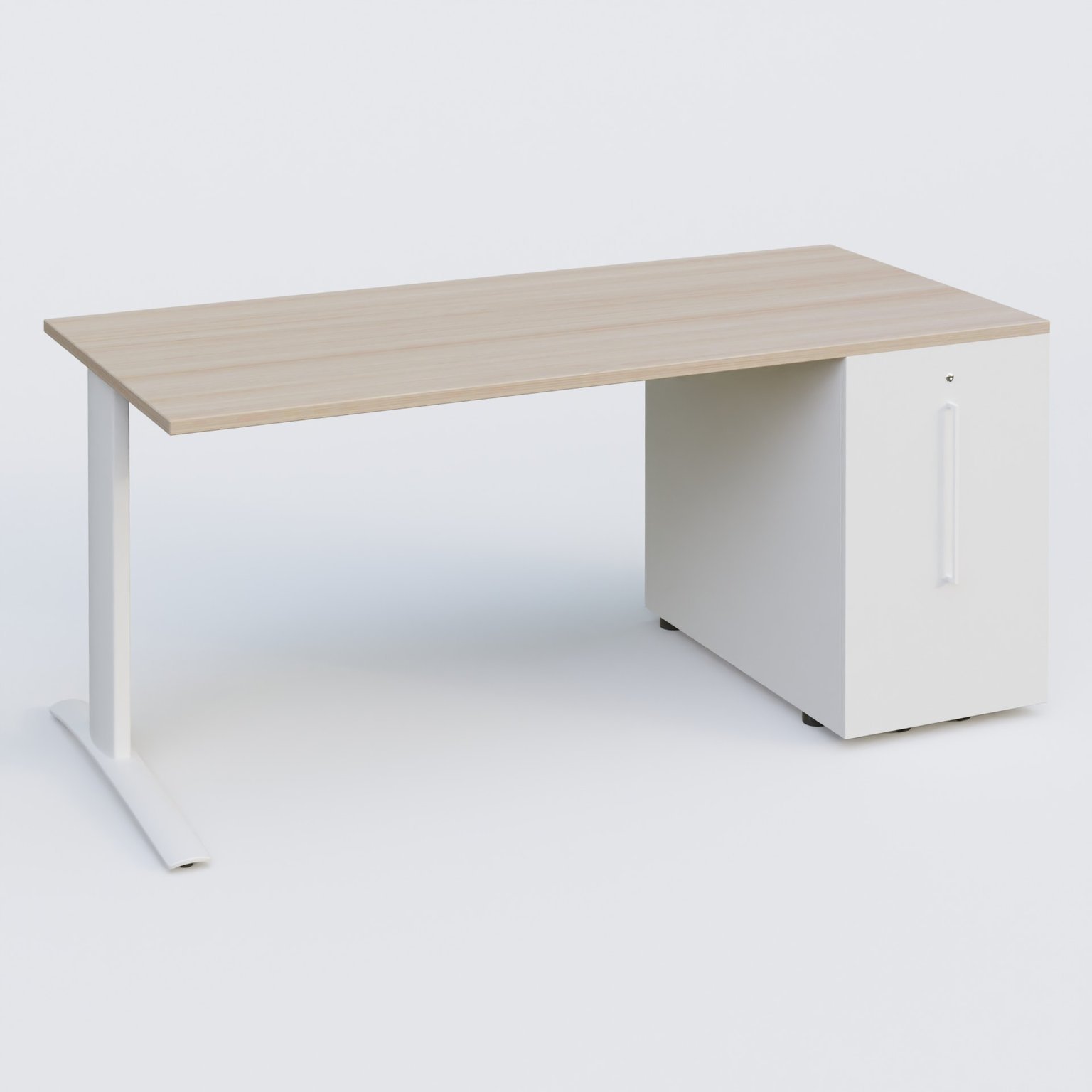 K1 Plateau droit 180x80 avec tour de rangement sous plateau à droite. Plateau Chêne clair et pietement Blanc blancBl cheneCe