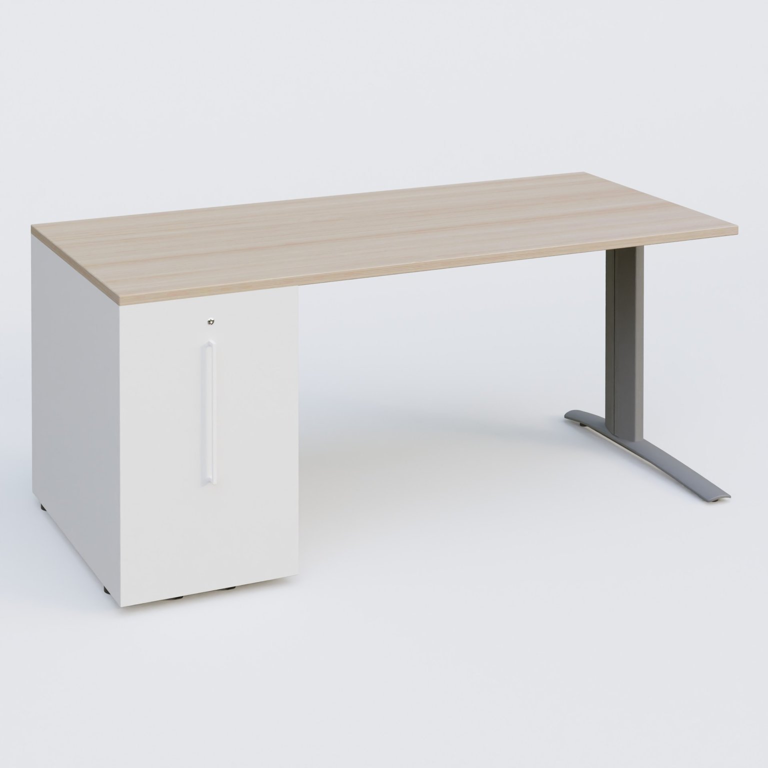 K1 Plateau droit 180x80 avec tour de rangement sous plateau à gauche. Plateau Chêne clair et pietement Aluminium aluminiumAl cheneCe
