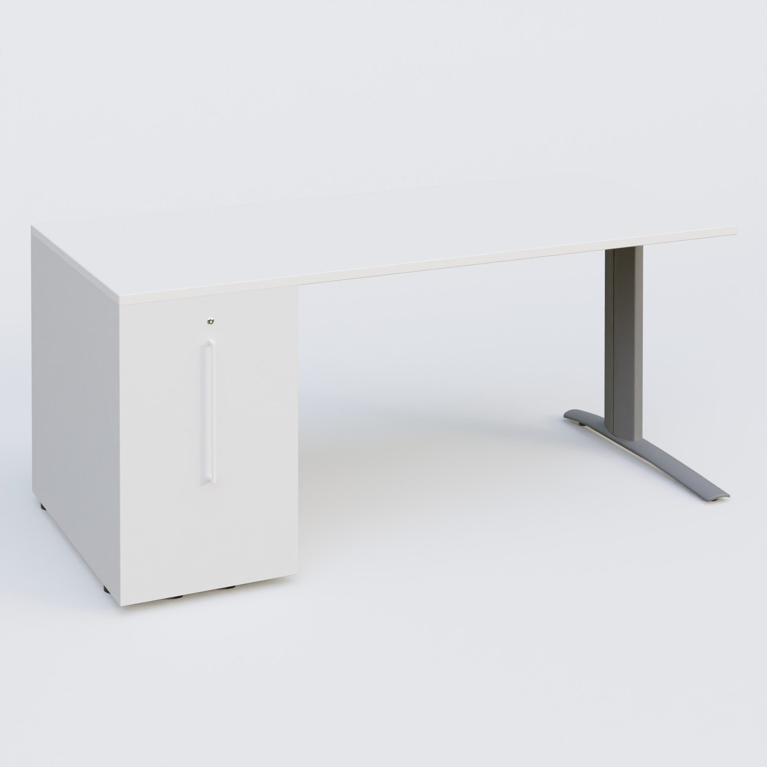 K1 Plateau droit 180x80 avec tour de rangement sous plateau à gauche. Plateau Blanc et pietement Aluminium