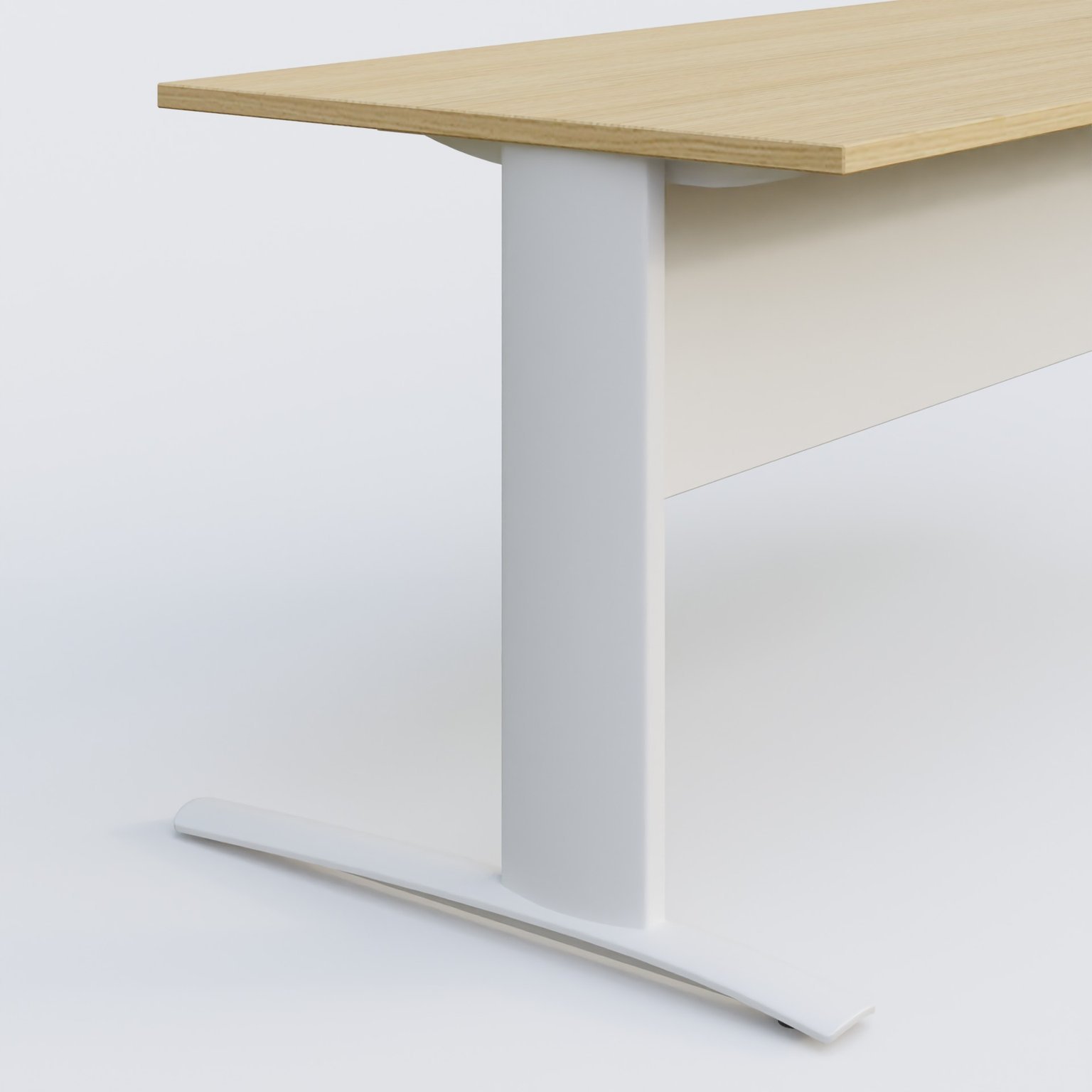 K1 Plateau droit 180x80 avec voile de fond métal. Plateau Chêne clair et pietement Blanc