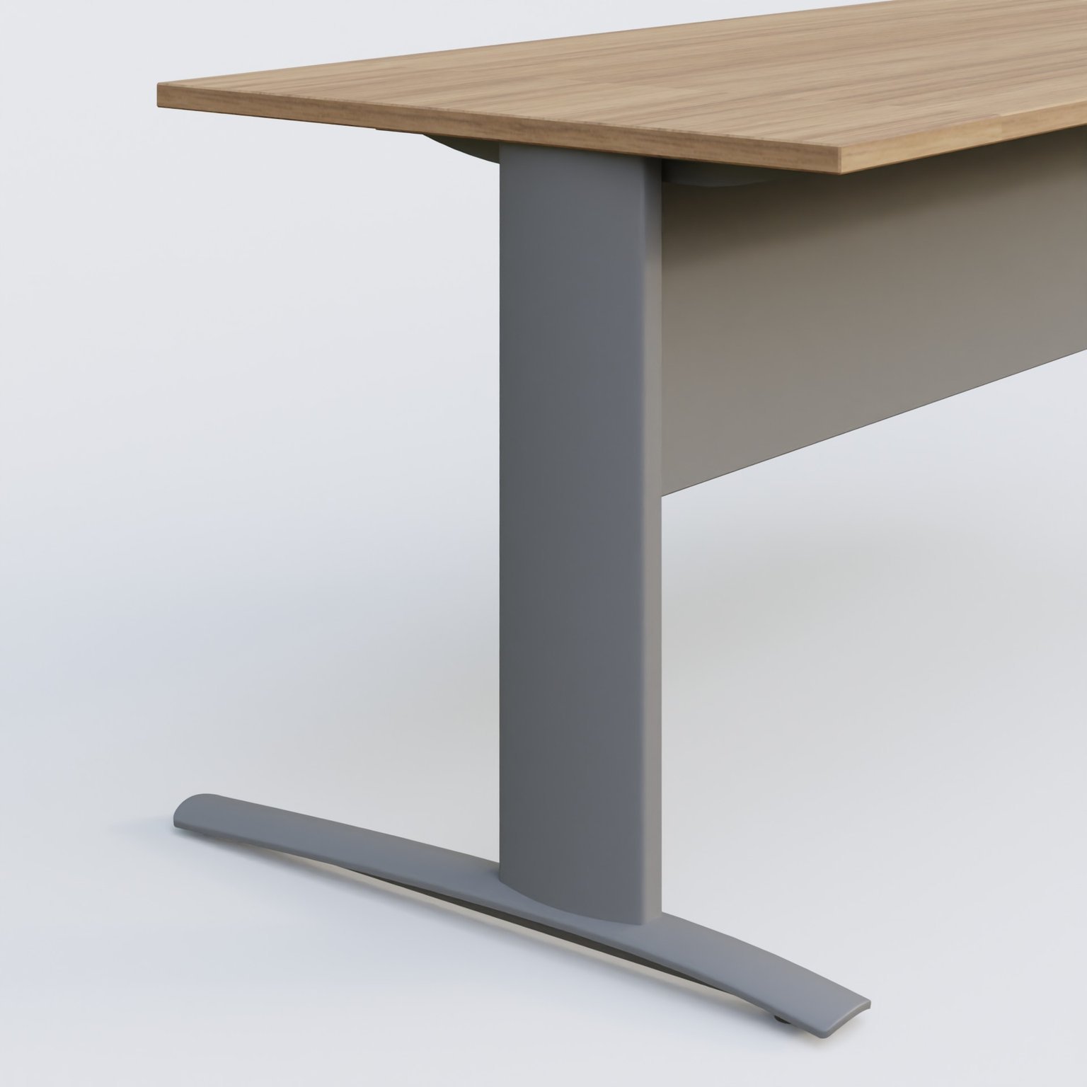 Plan droit mélamine en 25 mm avec structure pieds fixe avec voile de fond métal.