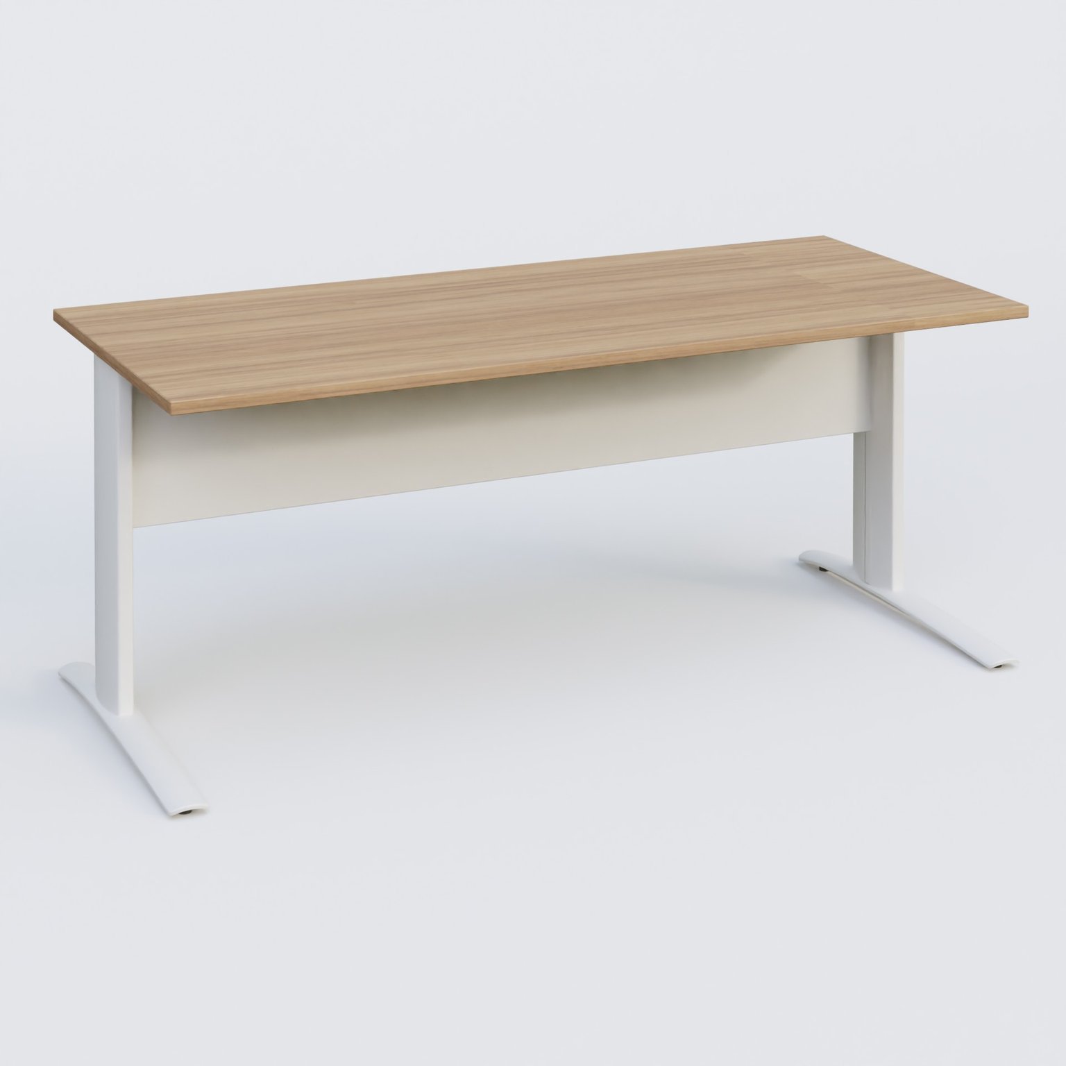 K1 Plateau droit 180x80 avec voile de fond métal. Plateau Noyer et pietement Blanc