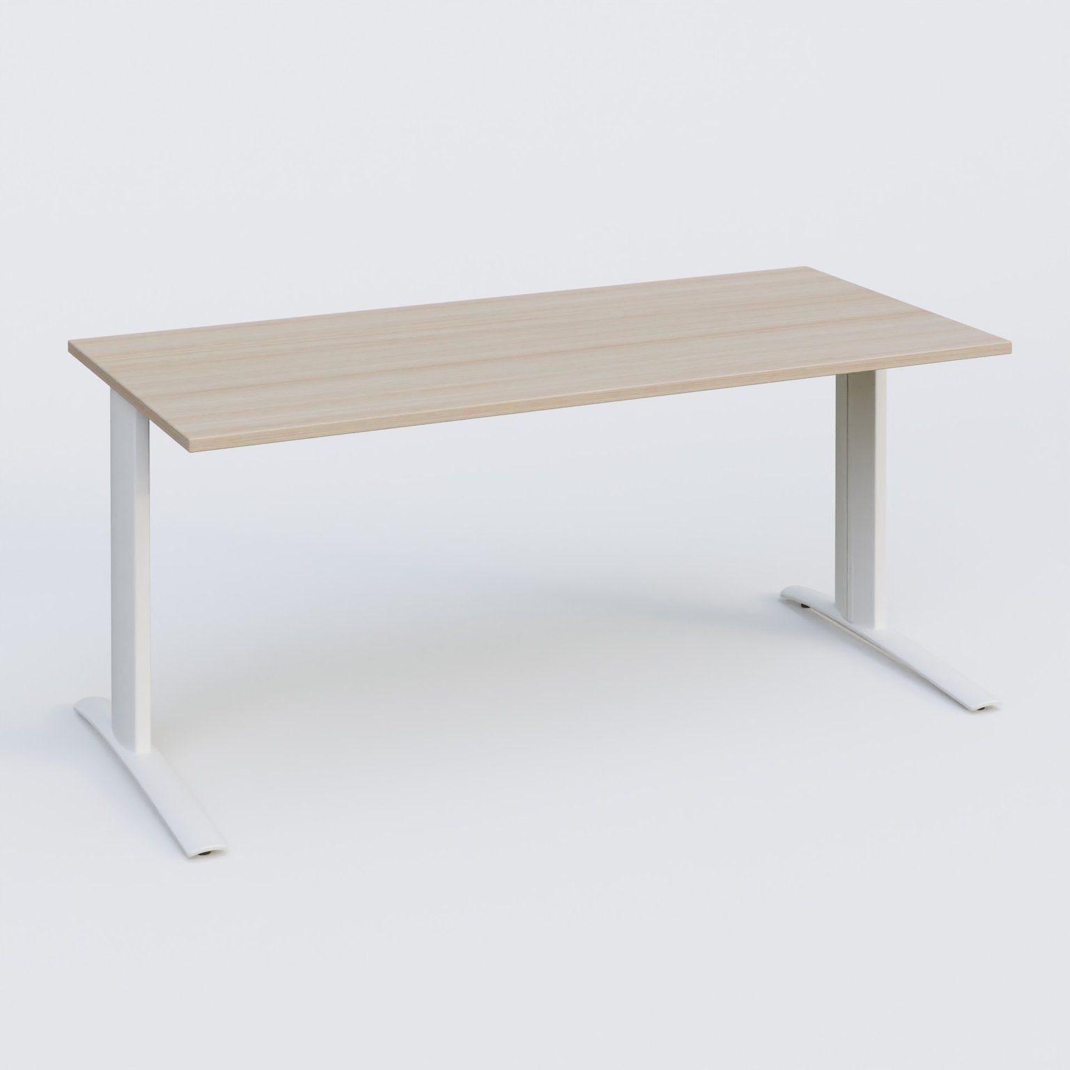 K1 Plateau droit 180x80 pieds fixe. Plateau Acacia et pietement Blanc