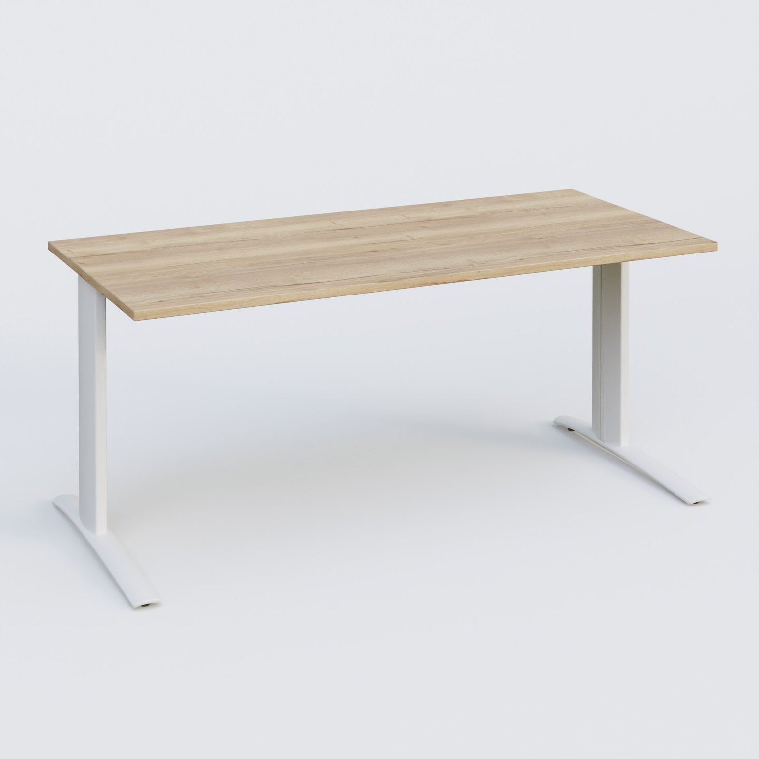 K1 Plateau droit 180x80 pieds fixe. Plateau Chêne naturel et pietement Blanc