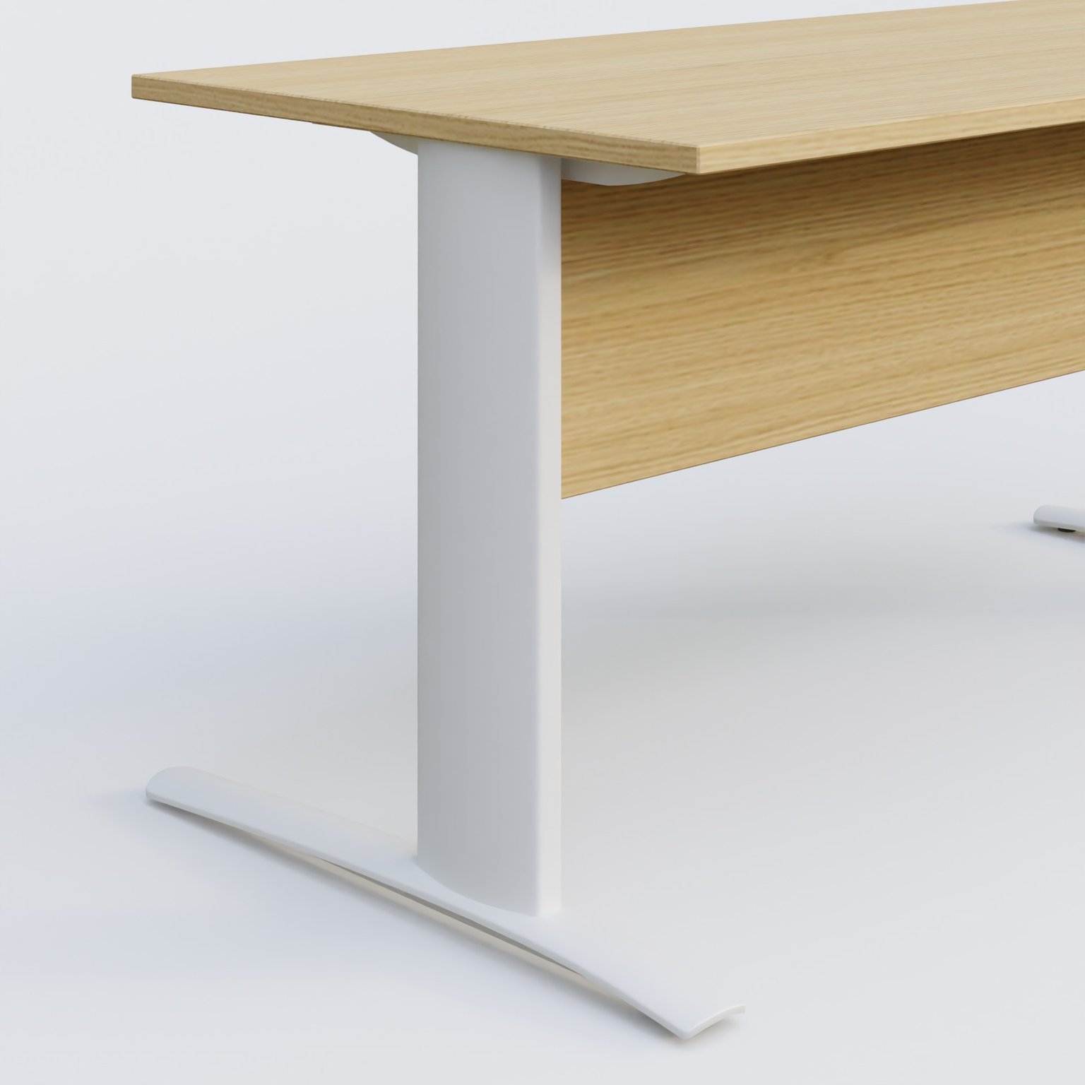 Plan droit mélamine en 25 mm avec structure pieds fixe et voile de fond bois.