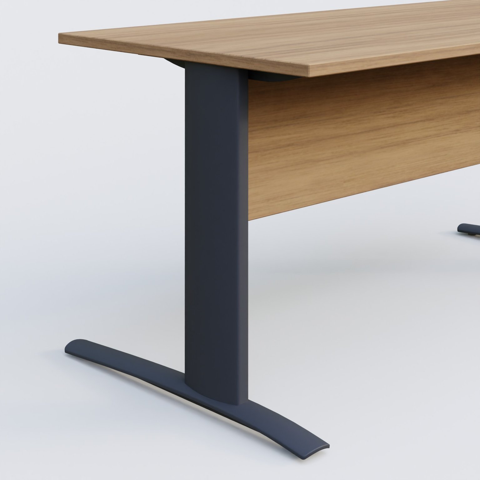 Plan droit mélamine en 25 mm avec structure pieds fixe et voile de fond bois.