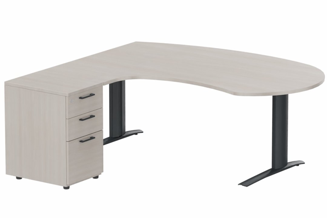 K1 POUTRE compact 90° manager 190x141x104x60cm sur caisson HB mélamine 3 tiroirs, plateau acacia, structure anthracite