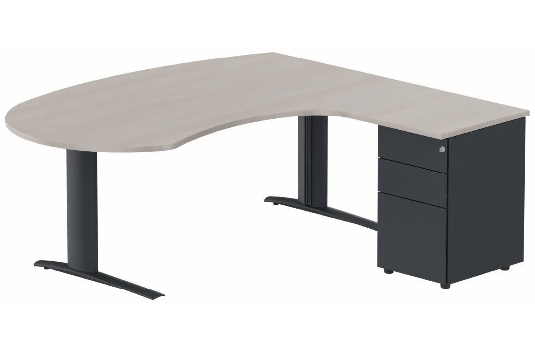 K1 POUTRE compact 90° manager 190x141x104x60cm sur caisson HB métal 3 tiroirs, plateau acacia, structure anthracite