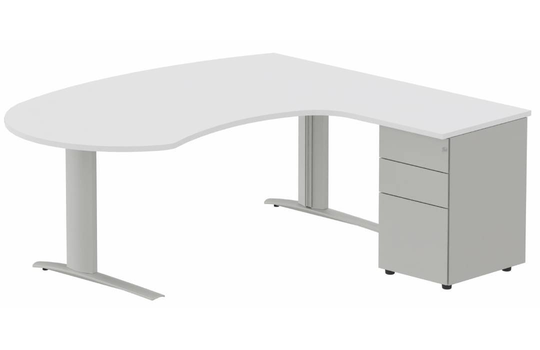 K1 POUTRE compact 90° manager 190x141x104x60cm sur caisson HB métal 3 tiroirs, plateau blanc, structure aluminium