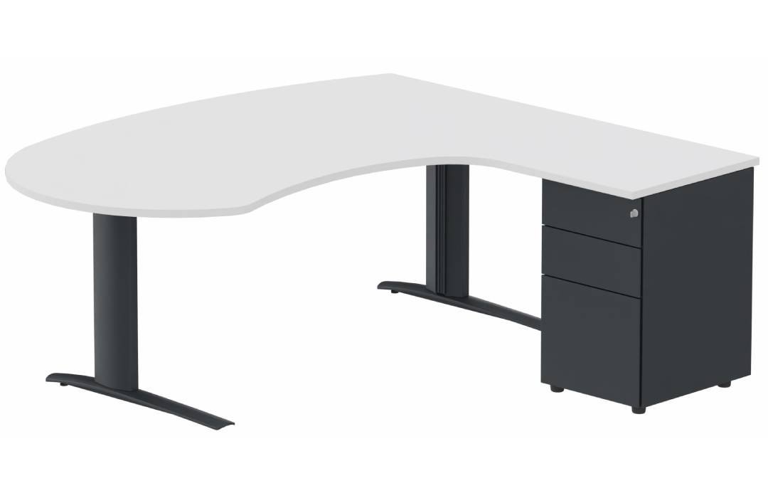K1 POUTRE compact 90° manager 190x141x104x60cm sur caisson HB métal 3 tiroirs, plateau blanc, structure anthracite