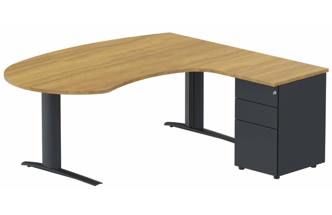 K1 POUTRE compact 90° manager 190x141x104x60cm sur caisson HB métal 3 tiroirs, plateau noyer, structure anthracite