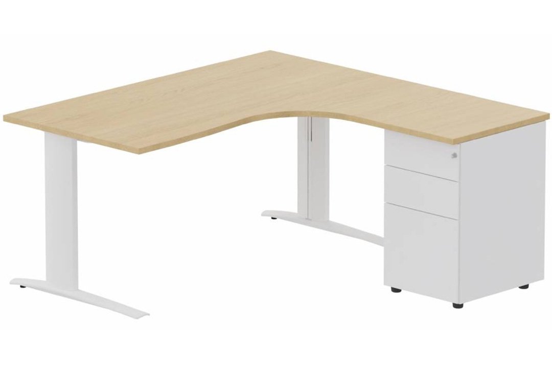 k1 Poutre - Plan compact 90° asymétrique 160x162x80 / 60cm avec caisson HB métal 3 tiroirs - retour à droite -