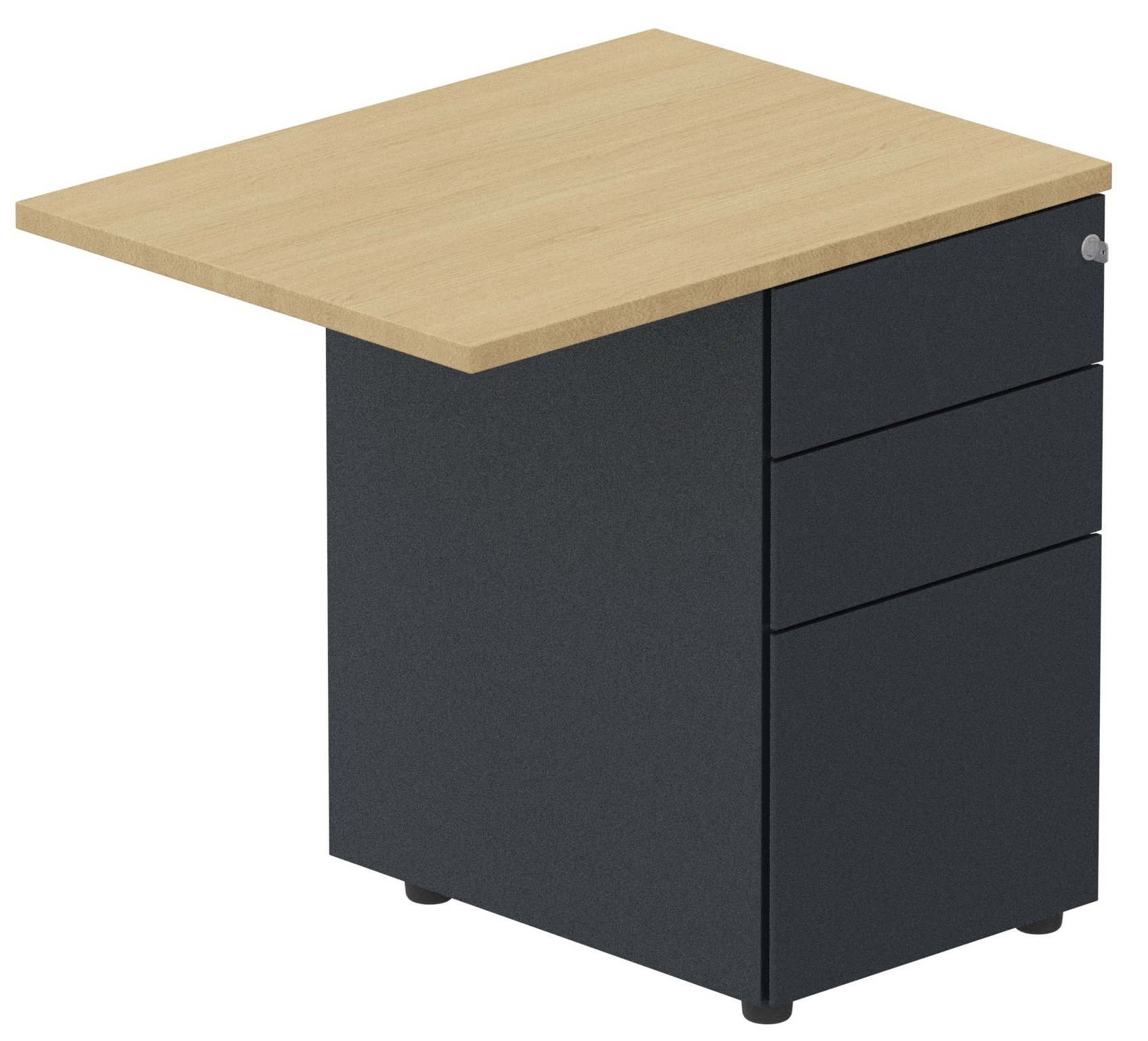 K1- Retour direct 100x60 sur caisson métal HB 3 tiroirs - Finitions = Plateau: Chêne (CE) / Piétements: Anthracite(AL)
