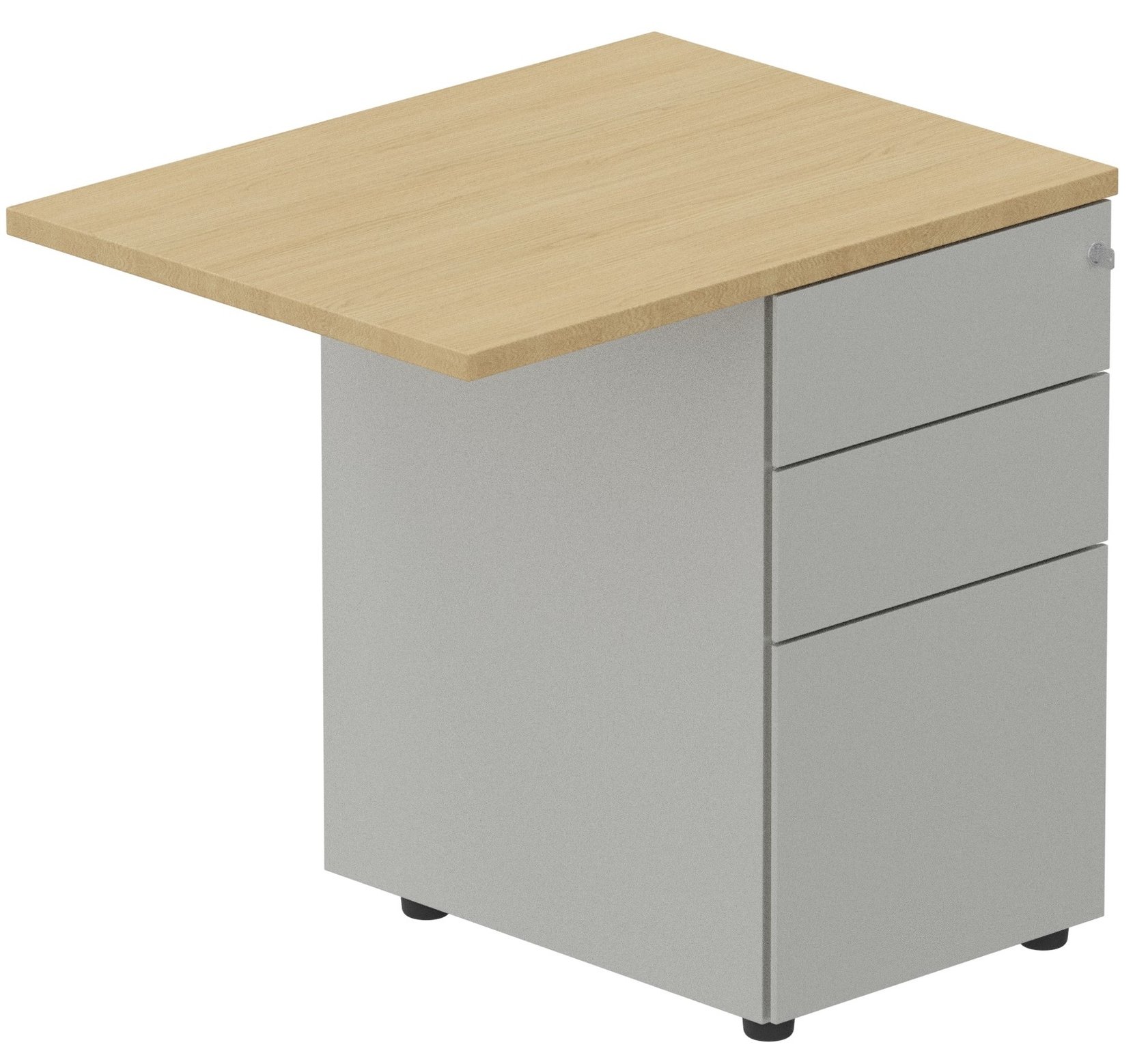 - K1- Retour direct 120x60 sur caisson métal HB 3 tiroirs - Plateau: Chêne (CE) / Caisson : Aluminium