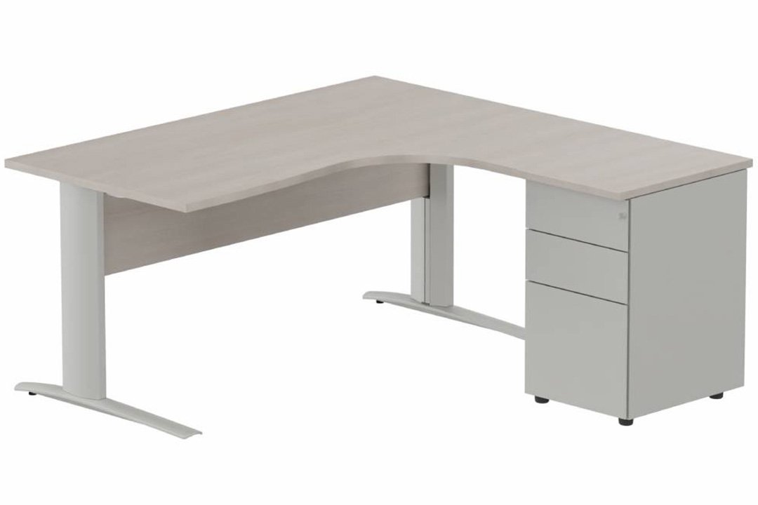 K1 VDF BOIS Compact 90° asymétrique 160x162x80/60cm retour à droite avec caisson HB métal 3 tiroirs, plateau acacia, structu