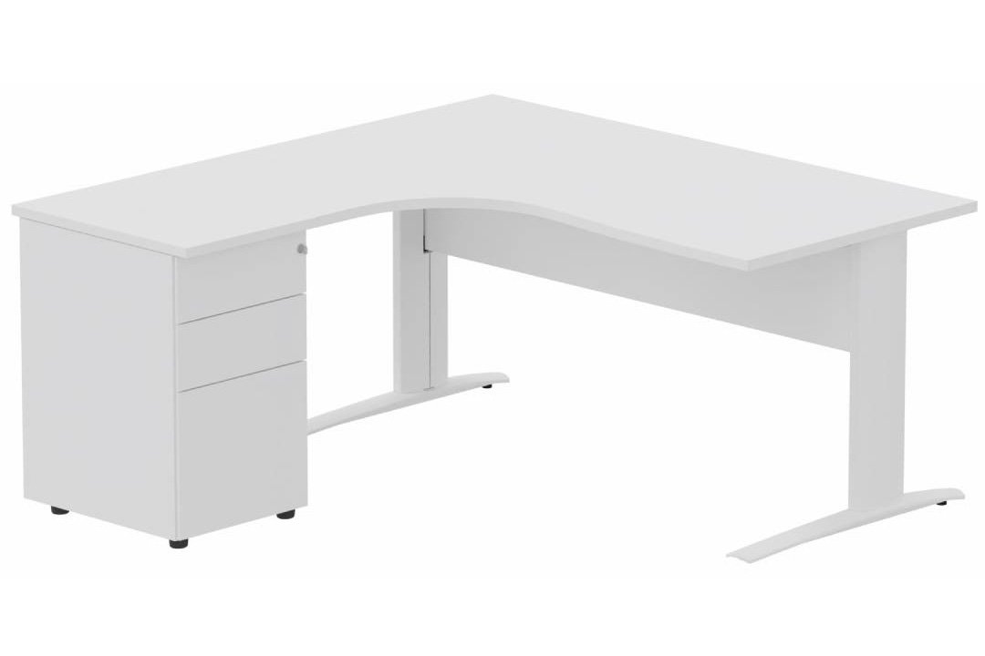 K1 VDF BOIS Compact 90° asymétrique 160x162x80/60cm retour à gauche avec caisson HB métal 3 tiroirs blanc/blanc - sur délai