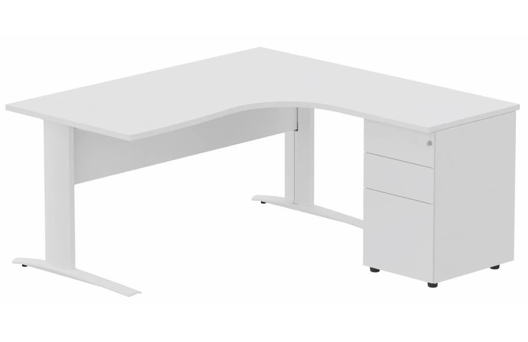 K1 VDF BOIS Compact 90° asymétrique 160x162x80/60cm retour à droite avec caisson HB métal 3 tiroirs blanc/blanc - sur délai