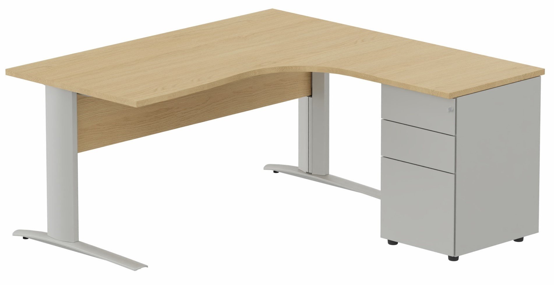 K1 VDF BOIS Compact 90° asymétrique 160x162x80/60cm retour à droite avec caisson HB métal 3 tiroirs hêtre/aluminium