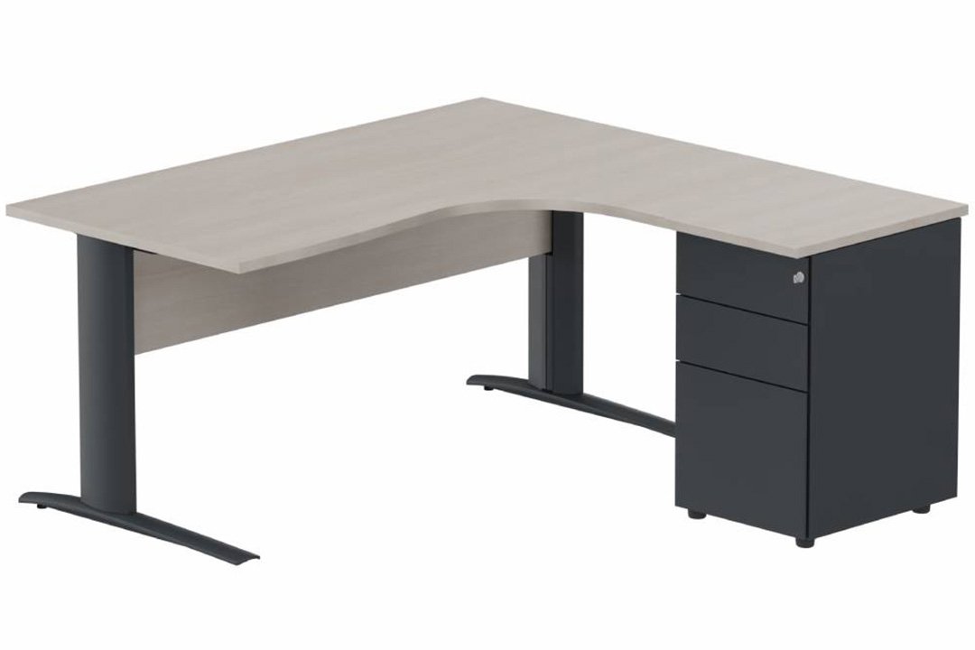 K1 VDF BOIS Compact 90° asymétrique 180x162x80/60cm retour à droite avec caisson HB métal 3 tiroirs, plateau acacia, structu